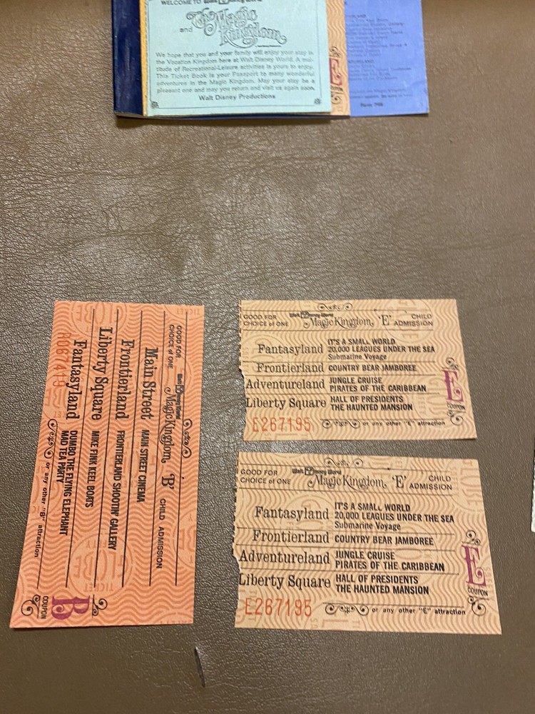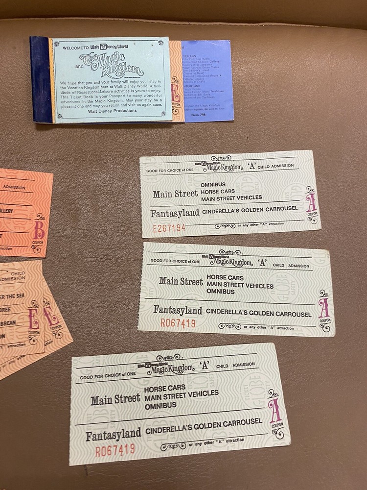 Vintage Magic Kingdom Coupon Book - 1975 - Blue Welcome All overall good condition with the tickets still being flat 3As are out and 1B and and 2 E please see all pics for details and message if you’d like more no returns