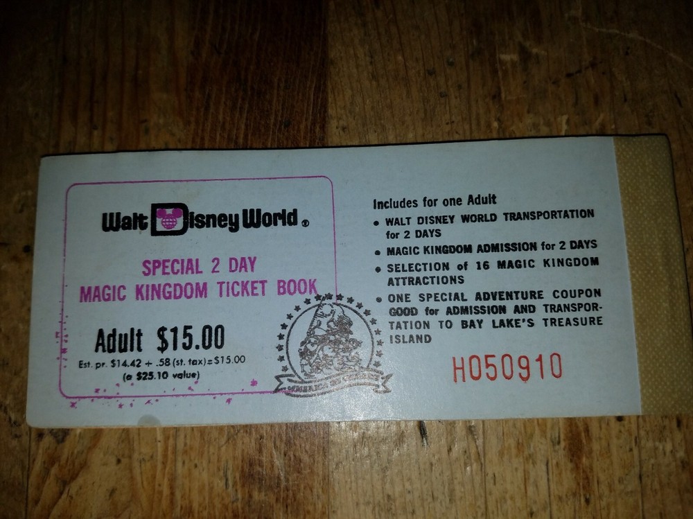 Here is a wonderful 1975 Disney World Treasure Island Adult ticket book for your Disney collection! It is a 16 adventure ticket book with 5 remaining tickets. The D and C tickets are attached with the same serial numbers while the E, B and A tickets with a different serial number are loose in the ticket book. The loose, added E, B and A tickets are also Adult tickets from the same era. It is in good condition with creases, edge wear, edge tears, indentations, folds, scuffing, surface wear, stains, curving and some marks. It still has bright colors. Item is sold “as is”. I try to describe my items as accurately as possible. Please email me with any questions before bidding. NO INTERNATIONAL BIDDERS PLEASE Winning bidder to pay by PayPal within 3 days after the end of the auction. Buyer must have a confirmed PayPal shipping address. Shipment will take place after receipt of cleared payment. I will package your item carefully for shipment. THANK YOU FOR LOOKING! PLEASE LOOK FOR MY OTHER DISNEYLAND AUCTIONS! I AM ALWAYS HAPPY TO COMBINE ITEMS FOR SHIPMENT TO SAVE YOU MONEY!