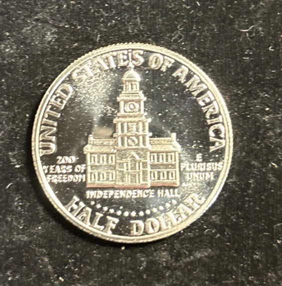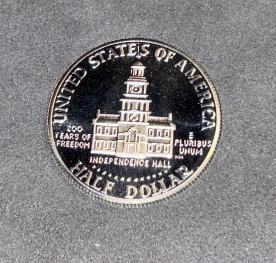 UNGRADED, UNCERTIFIED BUT UNCIRCULATED 1976 S KENNEDY PROOF STRIKE BICENTENNIAL HALF DOLLAR PROOF 40% SILVER 50C US COIN A genuine 1976 S Kennedy Bicentennial Silver Clad Half Dollar Coin, in Choice Proof Condition. Contains 40% Silver . This Bicentennial half dollar honors the 200th anniversary of America’s founding with Seth Huntington’s reverse featuring Independence Hall and the inscription 200 YEARS OF FREEDOM. You’re gonna want this Coin!!! Thanks for looking, Dana