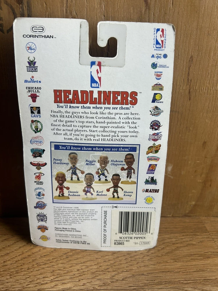Officially Licensed:YesLeague:National Basketball Association (NBA)Color:RedGender:Unisex AdultPre & Post Season:Regular SeasonSize:One SizeUPC:608326020056Country/Region of Manufacture:Chinagtin13:608326020056Team:Chicago BullsSport:BasketballCapacity:Less than 8 ozPlayer:Scottie PippenBrand:corinthianProduct:Action Figure