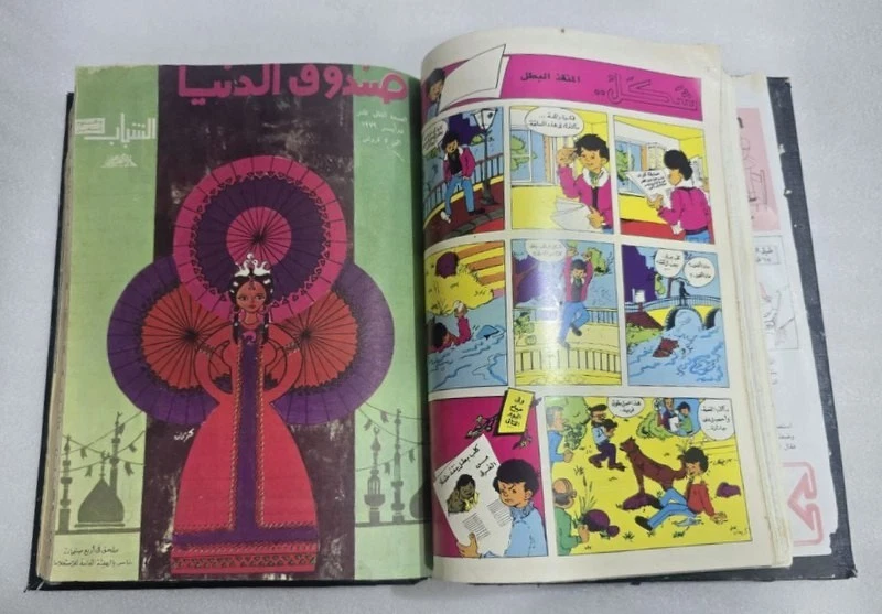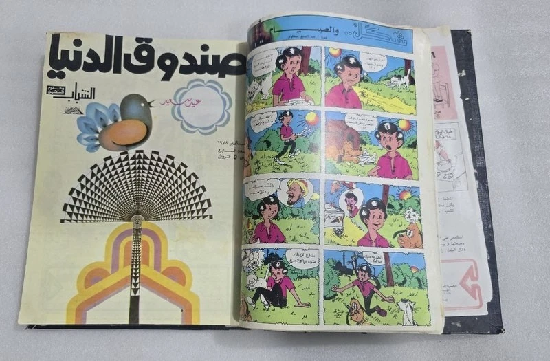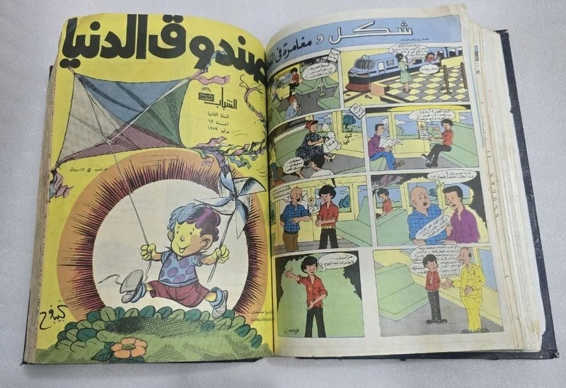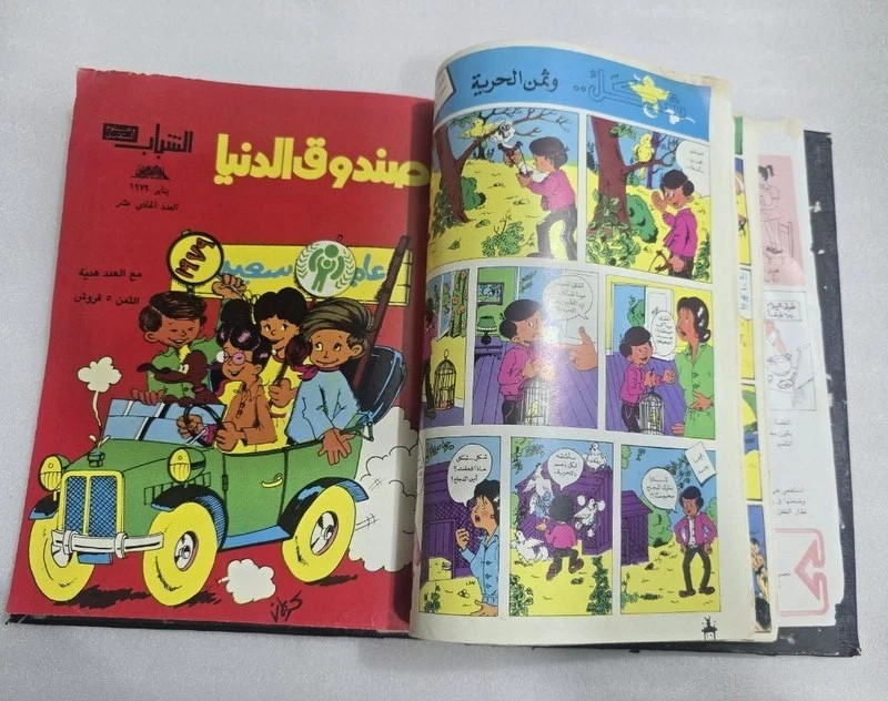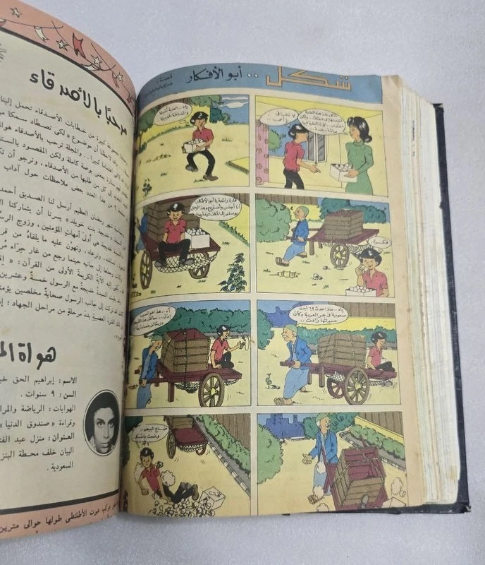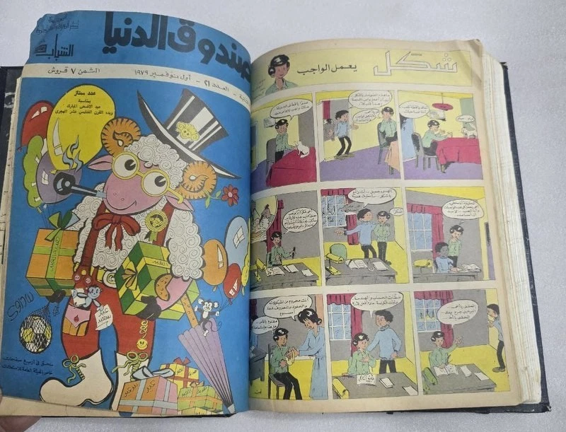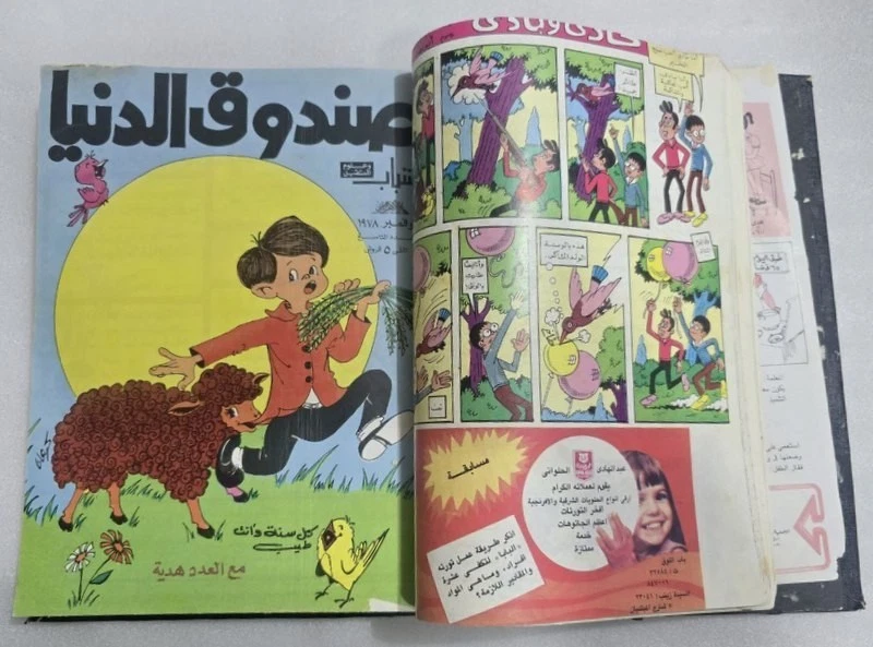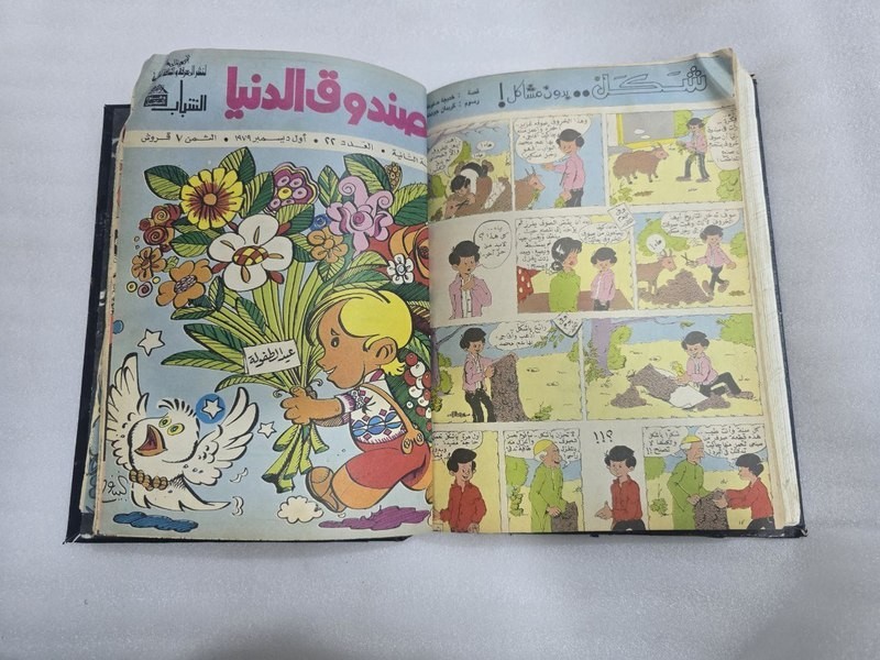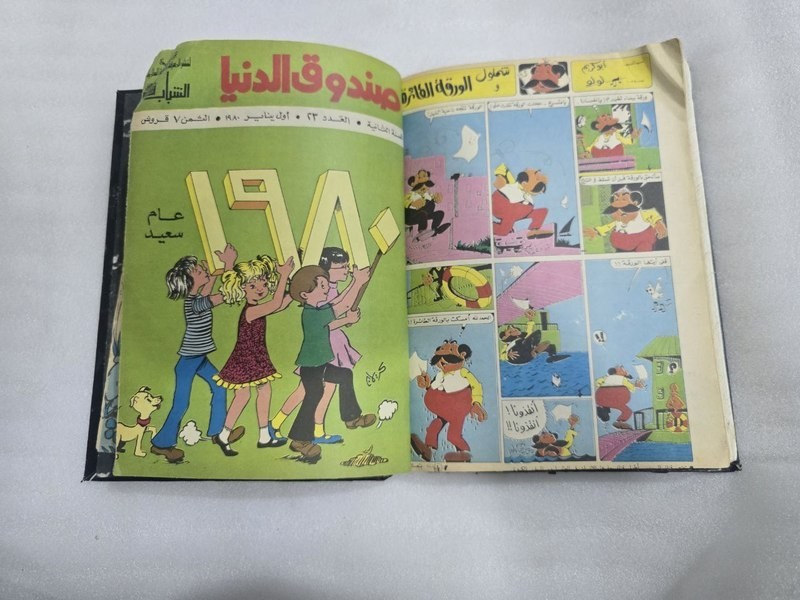 1980s Lot 18 Children Arabic Original Comics مجلة صندوق الدنيا - كومكس الاهرام 1978 issue #4 - 5 - 7 -8 - 9 - 10 - 11 - 12 -8 - 9 - 10 1979 issue #12 - 13 - 14 -15 -16 -17 - 19 - 20 - 21- 22 1980 issue #23 -24 Size : 24 x 17 cm Condition : good , light humidity residue on last pages causing minor wrinkling. . (check images). No missing pages , Complete.