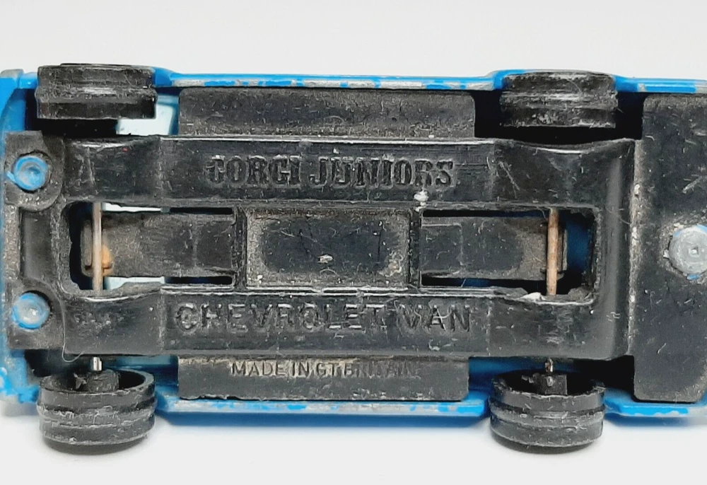 1978 Corgi Juniors U.S. Chevrolet Van Blue Vintage Diecast Model Toy 1/64 Scale Good condition with some chipping paint/finish wear commensurate with age and normal use