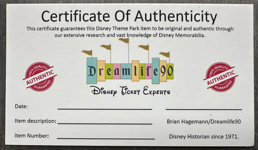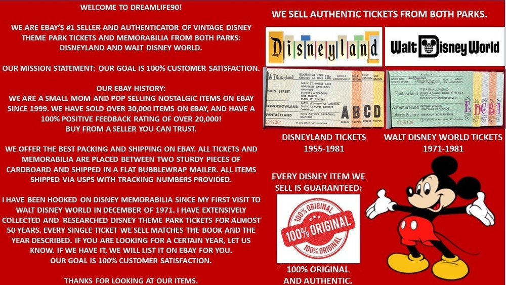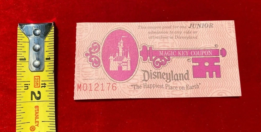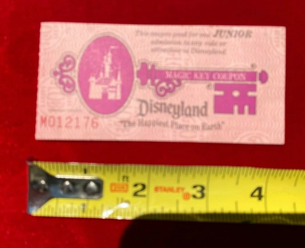 Dreamlife90 now inclu des a COA (Certificate Of Authenticity) with every Disney Theme Park item we sell! WHITE GLOVE TREATMENT - 1978 Disneyland A - E JUNIOR TICKET Magic Kingdom Club MAGIC KEY COUPON RARE! 5” x 2” Paper Ticket. Authentic Serial Number M012176 printed on this beautiful mint condition ticket. "This coupon good for one Junior admission to any ride or attraction at Disneyland." No rips, tears, bends, folds, or strange markings. This ticket displays great! Be sure to look for the GLOBE TICKET SAFETY on all Disney Theme Park Tickets for authentication. We place all Disney Tickets in acid-free bags to protect them from the elements and also to protect them during shipping. SEE PHOTOS FOR MORE DETAILS! Stored in a smoke-free, pet-free, humidity-controlled environment. SUITABLE FOR FRAMING. K2 is an internal inventory number we use here at dreamlife90 to ensure that you receive the exact item that you order. We combine shipping on all Disney memorabilia. Be sure to visit the rest of our auctions to see more great vintage Walt Disney World and Disneyland paper memorabilia. Always be sure to look for the "Globe Ticket Safety" watermark on all authentic vintage Disney Tickets. USPS tracking included on this item. Condition is Used. Shipped flat in cardboard and bubble wrap with USPS Ground Advantage. We always combine shipping for multiple auction wins. See our other auctions for more great authentic vintage 1970’s Walt Disney World Theme Park admission tickets. We offer the safest and best shipping on EBay. We are a family-run Ebay business - check out our 20,000+ positive feedback rating, dating all the way back to 1999! We’re not happy until you are. Thanks for looking, and SEE YOU REAL SOON!