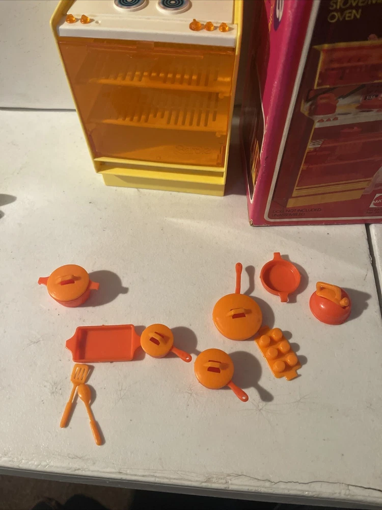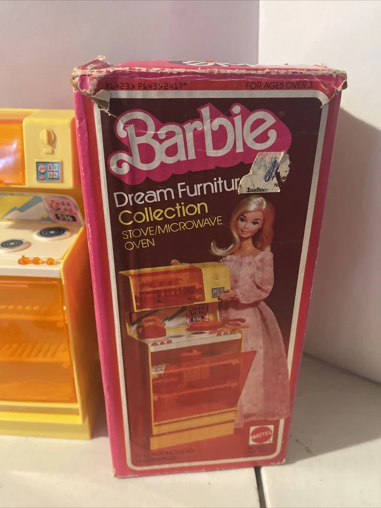 Set Includes:Oven and microwave plus accessoriesItem Length:10 inTheme:BabiesItem Width:5 inProduct Line:Dream FurnitureFeatures:Adult Assembly Required, Collector Toy, Detachable Parts, Interactive, Special Edition, WashableFranchise:MattelBrand:MattelMaterial:PlasticYear Manufactured:1978Series:Dream Furniture Collection BARBIE by MattelPackaging:Original (Opened)Occasion:All OccasionsDoll Age Group:Teens, YouthItem Weight:1 lbTime Period Manufactured:1970-1979Age Level:3 & UpOriginal/Licensed Reproduction:OriginalCharacter:BarbieType:Doll PlaysetVintage:YesCountry/Region of Manufacture:United States
