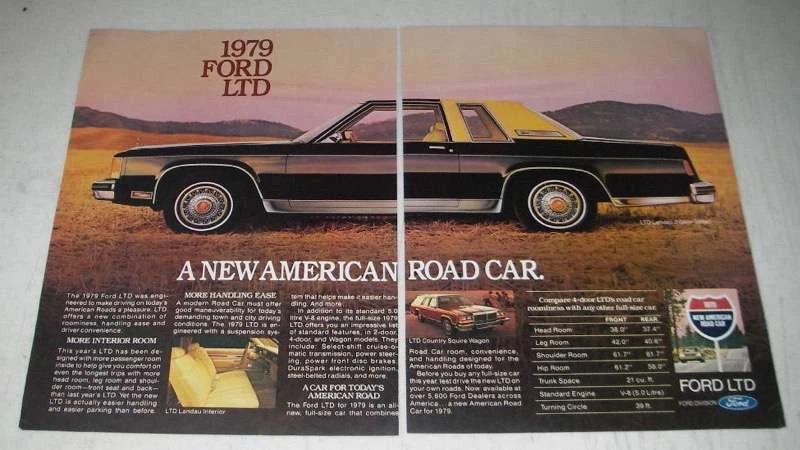 Item ID: Multi5 This listing is for a vintage paper advertisement. This is a 1979 4-page (3-pages, one of them front/back) ad for Ford LTD cars, featuring an LTD Landau 4-door Sedan and an LTD Landau 2-door sedan! The size of the ad is approximately 8.5x11 inches per page (or about 11x17 when opened side-by-side). The caption for this ad is 'Introducing a new American Road car' The ad is in good overall condition, with some wear. This vintage ad would look great framed and displayed! Add it to your collection today!