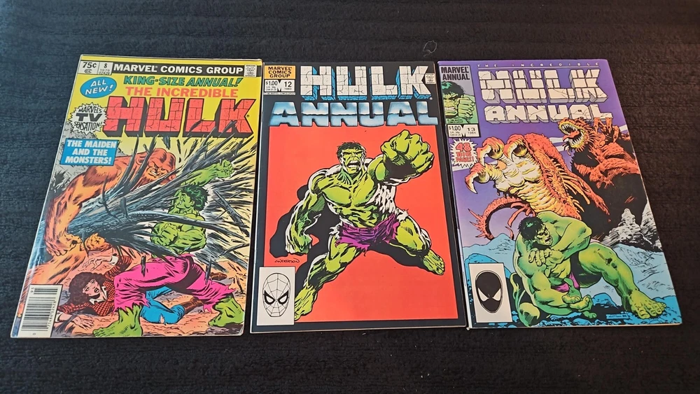 PLEASE VISIT MY EBAY STORE FOR MORE LISTINGS NEW SHIPPING POLICY: FIRST ORDER IS $6.99 THEN 65 CENTS FOR EACH ADDITIONAL ORDER. ALL ITEMS SHIPPED GROUND ADVANTAGE WITH $100 INSURANCE. IF YOU WOULD LIKE TO ADD ADDITIONAL INSURANCE PLEASE CONTACT ME BEFORE SUBMITTING PAYMENT. To receive shipping discount, ALL ITEMS MUST BE PAID FOR IN ONE TRANSACTION. If you pay for items individually, I will not give a refund of shipping charges due to the fees from eBay and PayPal. PAYMENT POLICY: ALL ITEMS MUST BE PAID FOR WITHIN 2 DAYS OF ITEM END. ON THE 3RD DAY AN UNPAID ITEM CASE WILL BE OPENED AND AT THAT POINT NO ADDITIONAL ITEMS CAN BE ADDED TO THAT ORDER. ANY ADDITIONAL ITEMS WILL BE INVOICED SEPARATELY. YOU ARE BIDDING ON A MARVEL COMICS LOT OF 7 INCREDIBLE HULK ANNUALS. ISSUES INCLUDE: #8 NEWSSTAND (1979) #12 (1983) #13 (1984) #14 (1985) #15 (1986) #17 (1991) #18 (1992) MID TO HIGH GRADE. (SEE PICS). BAGGED ONLY NO BOARDS. WE USE OVERSTREET GRADING TECHNIQUES, SO PLEASE VIEW ALL PICS AS GRADING IS TOTALLY SUBJECTIVE. *PLEASE READ BELOW BEFORE BIDDING AS I WILL NOT CANCEL ANY BID/ORDER ONCE IT HAS BEEN PLACED* Payment is required within 2 days of auction end. If payment is not received I will open an unpaid item case on the third day. Once an unpaid item case has been opened, no additional items can be added to that order. All items will be shipped within 1 business day of receiving cleared payment. All items are shipped with tracking. I take great care in packaging items for shipment, but the post office does not always take great care with packages. If you would like insurance on your package, please let me know BEFORE submitting payment and I will be happy to add insurance to your invoice. If a package arrives damaged, please let me know and I will send a return shipping label to return the item. I DO NOT OFFER PARTIAL REFUNDS FOR ITEMS DAMAGED IN SHIPPING. RETURNS ONLY. Florida residents will be charged 7% sales tax. FOR ALL INTERNATIONAL CUSTOMERS PLEASE READ. I USE EBAY'S GLOBAL SHIPPING PROGRAM FOR ALL INTERNATIONAL SHIPMENTS. THE SHIPPING CHARGES I CHARGE ARE FOR US SHIPPING ONLY TO THE GLOBAL SHIPPING CENTER. EBAY SETS THE INTERNATIONAL SHIPPING RATES AND ALSO ANY IMPORT FEES. I HAVE NO CONTROL OVER THOSE CHARGES. EBAY ALSO DOES NOT ALLOW ME TO COMBINE SHIPMENTS. THERE IS NO COMBINED SHIPPING OR SHIPPING DISCOUNT ON ANY INTERNATIONAL SHIPMENTS. ALL INTERNATIONAL SHIPMENTS WILL BE INVOICED SEPARATELY.