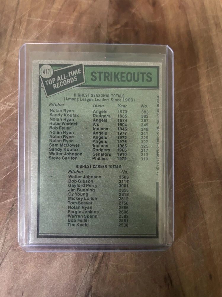 1979 Topps - All-Time Record Holders Strikeouts #417 Nolan Ryan, Walter Johnson