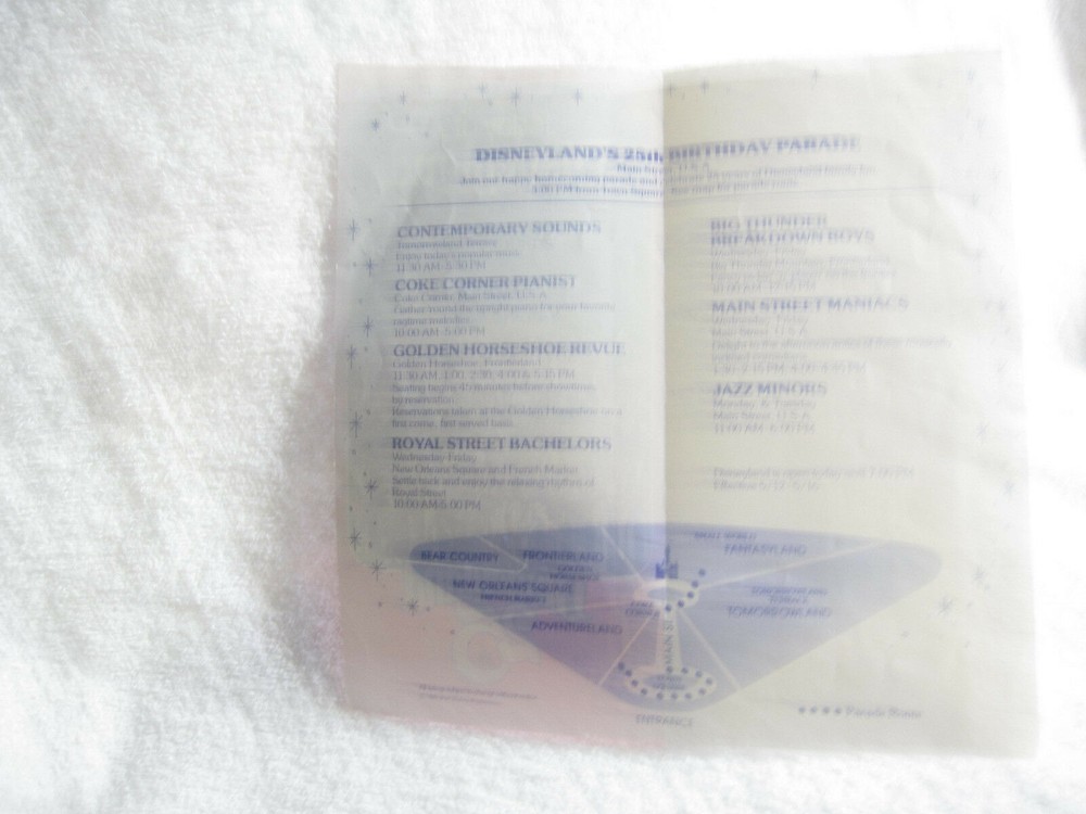 Here is a wonderful original 1979 Disneyland folder for your Disney collection! It is in good condition with creases, edge wear, edge tears, curving, folding, corner folds, scuffing, indentations, stains, fading, and some marks. It still has bright colors. Item is sold “as is”. I try to describe my items as accurately as possible. Please email me with any questions before bidding. NO INTERNATIONAL BIDDERS PLEASE Winning bidder to pay by PayPal within 3 days after the end of the auction. Buyer must have a confirmed PayPal shipping address. Shipment will take place after receipt of cleared payment. I will package your item carefully for shipment. THANK YOU FOR LOOKING! PLEASE LOOK FOR MY OTHER DISNEYLAND AUCTIONS! I AM ALWAYS HAPPY TO COMBINE ITEMS FOR SHIPMENT TO SAVE YOU MONEY
