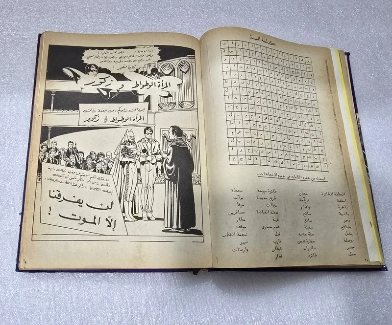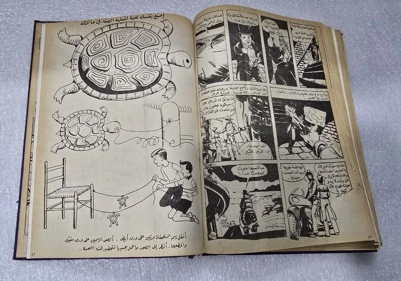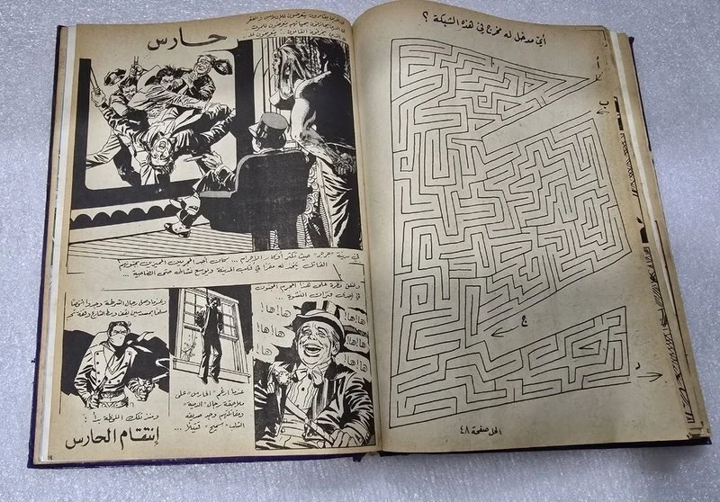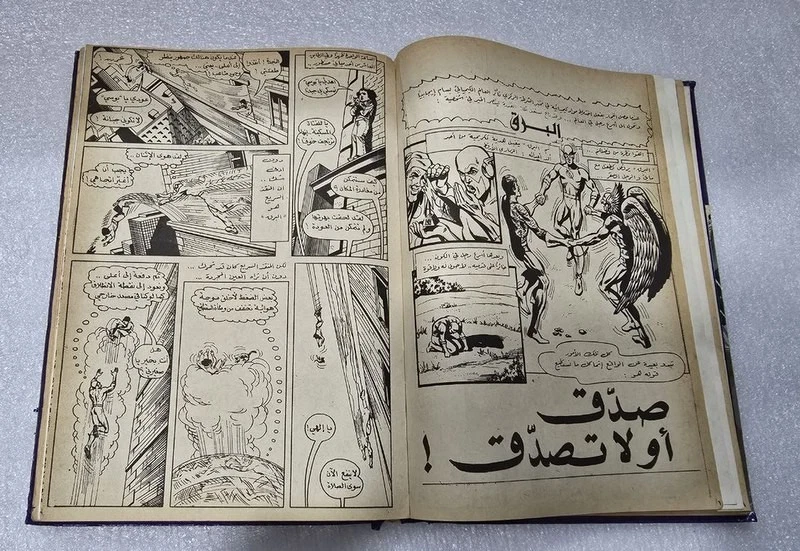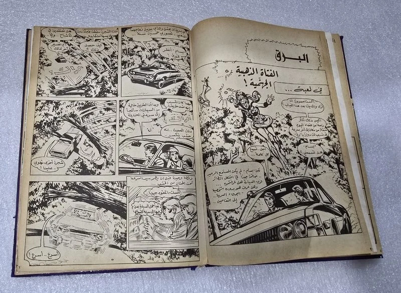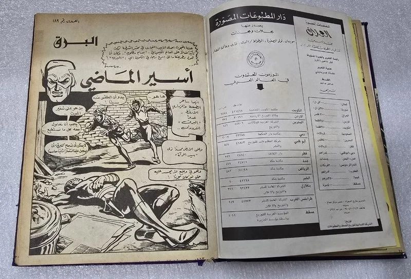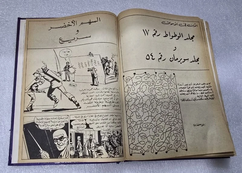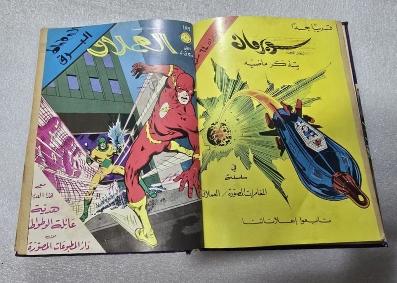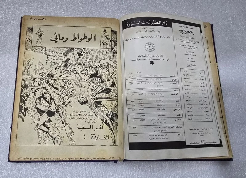 1980 Batman Lebanese Arabic Comics original Book No.18مجلد الوطواط العملاق المغامرات المصورة كومكس Title : Batman الوطواط Year: 1980 240 pages Lebanese Original Arabic Comics. Not a reprint. Volume No. 18 Comics #: 181, 185, 189, 193, 197, 201 Condition: Good , minimal Tape repair to spine. No text markings , Small tears on spine (check images).