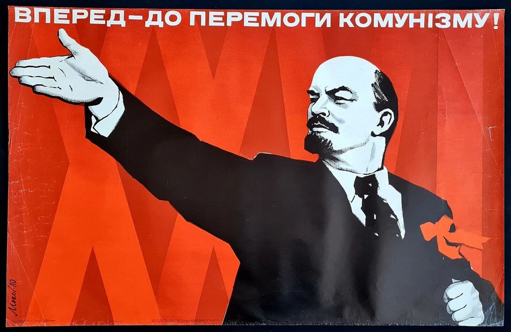 - Literally English translation: AHEAD, TO THE COMMUNISM VICTORY! border-spacing POSTER ARTIST: MOKHOR YURIY PAVLOVICH SUBJECT: COMMUNISM PROMOTION PRINT YEAR: 1980 LANGUAGE: UKRAINIAN PRINT RUN: 14.000 SIZE: 27" x 42" = CM: 69x 108 PUBLISHED BY: "POLITIZDAT UKRAINY", KIEV CONDITION: ROLLED, NEAR TO GOOD - - - Listing and template services provided by inkFrog