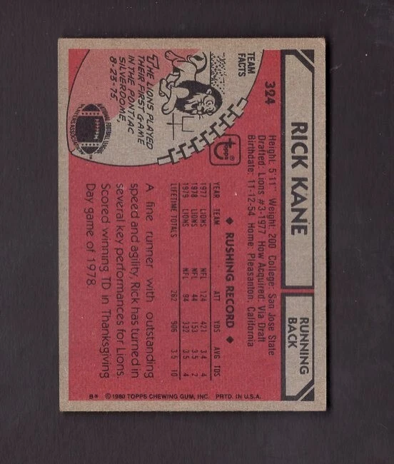 1980 Topps SIGNED/Autographed # 324 Rick Kane (deceased 2009). Signed in black sharpie. The card is in VG condition. SHIPPING IS FREE. If you think you might buy multiple items from any seller that offers combined shipping, use the "Add To Cart" option under the "Buy It Now" button instead of the buy-it-now, and this will combine your purchases into one shipping charge as you add more items to your cart and purchase. Only make your payment after you have added all the items you want into your cart - you should then see that there is one charge for shipping when you go to make your payment. (col, #467)