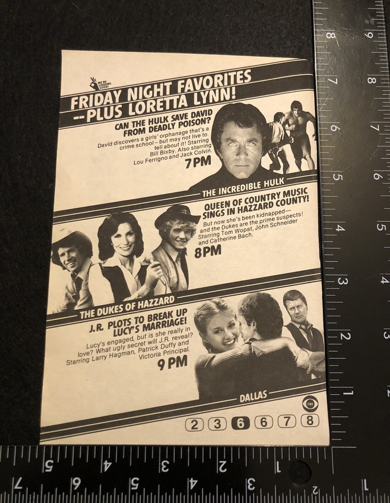1980s Incredible Hulk Dukes of Hazzard TV Guide Magazine Ad 2D21 Vintage Collectible