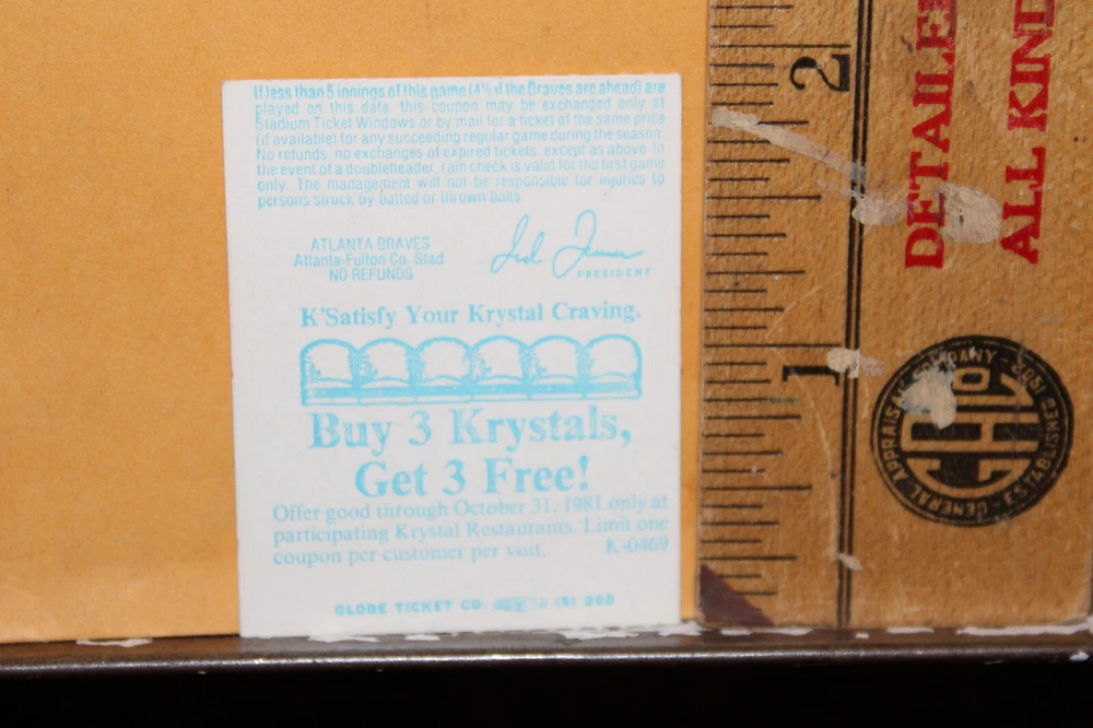 1981 Atlanta Braves Baseball Ticket Chicago Cubs Dugout Level MLB