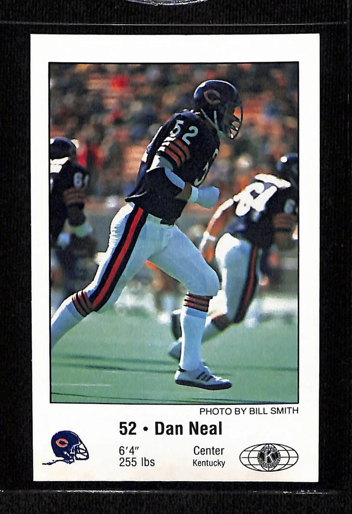 This is a nice example of a 1981 Chicago Bears Police #NNO Dan Neal .Other important information about this card:- NM/MT+ Set Break! In 1981 Dan Neal played for the Chicago Bears. Combined shipping up to 5 standard width cards, please reach out to me about packaging more cards or other combined items for shipping. Please check out our other listings for more great cards.
