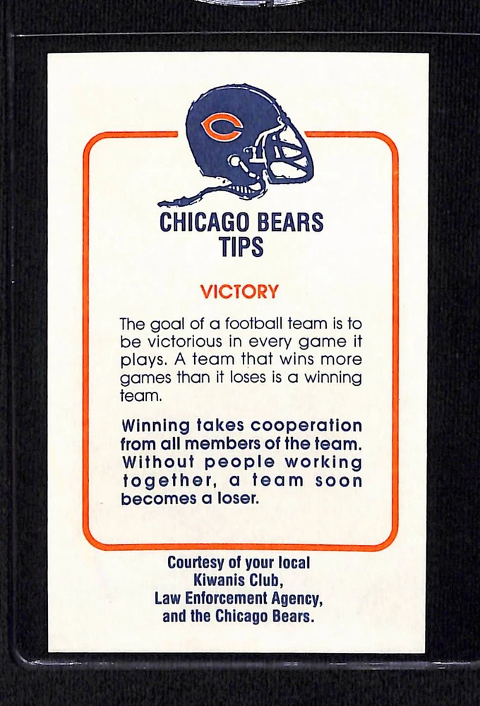 This is a nice example of a 1981 Chicago Bears Police #NNO Dennis Lick .Other important information about this card:- NM/MT+ Set Break! In 1981 Dennis Lick played for the Chicago Bears. Combined shipping up to 5 standard width cards, please reach out to me about packaging more cards or other combined items for shipping. Please check out our other listings for more great cards.