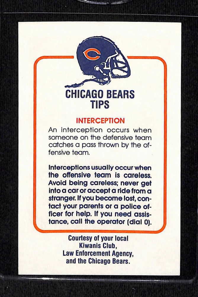 This is a nice example of a 1981 Chicago Bears Police #NNO Gary Fencik .Other important information about this card:- NM/MT+ Set Break! In 1981 Gary Fencik played for the Chicago Bears. Combined shipping up to 5 standard width cards, please reach out to me about packaging more cards or other combined items for shipping. Please check out our other listings for more great cards.