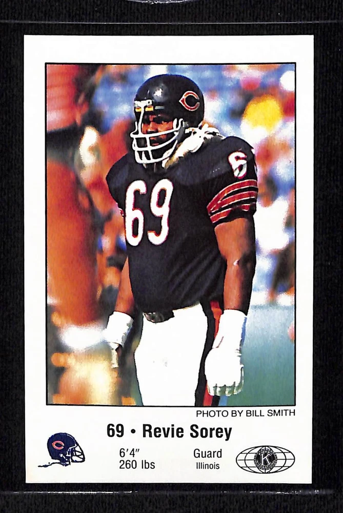 This is a nice example of a 1981 Chicago Bears Police #NNO Revie Sorey .Other important information about this card:- NM/MT+ Set Break! In 1981 Revie Sorey played for the Chicago Bears. Combined shipping up to 5 standard width cards, please reach out to me about packaging more cards or other combined items for shipping. Please check out our other listings for more great cards.