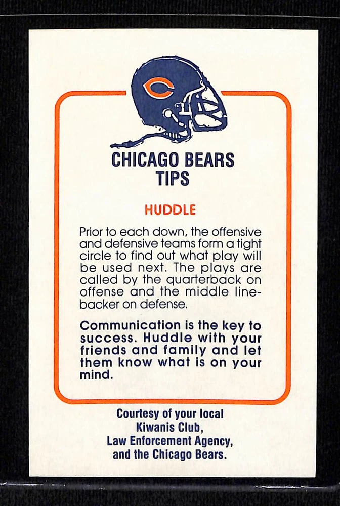 This is a nice example of a 1981 Chicago Bears Police #NNO Tom Hicks .Other important information about this card:- NM/MT+ Set Break! In 1981 Tom Hicks played for the Chicago Bears. Combined shipping up to 5 standard width cards, please reach out to me about packaging more cards or other combined items for shipping. Please check out our other listings for more great cards.