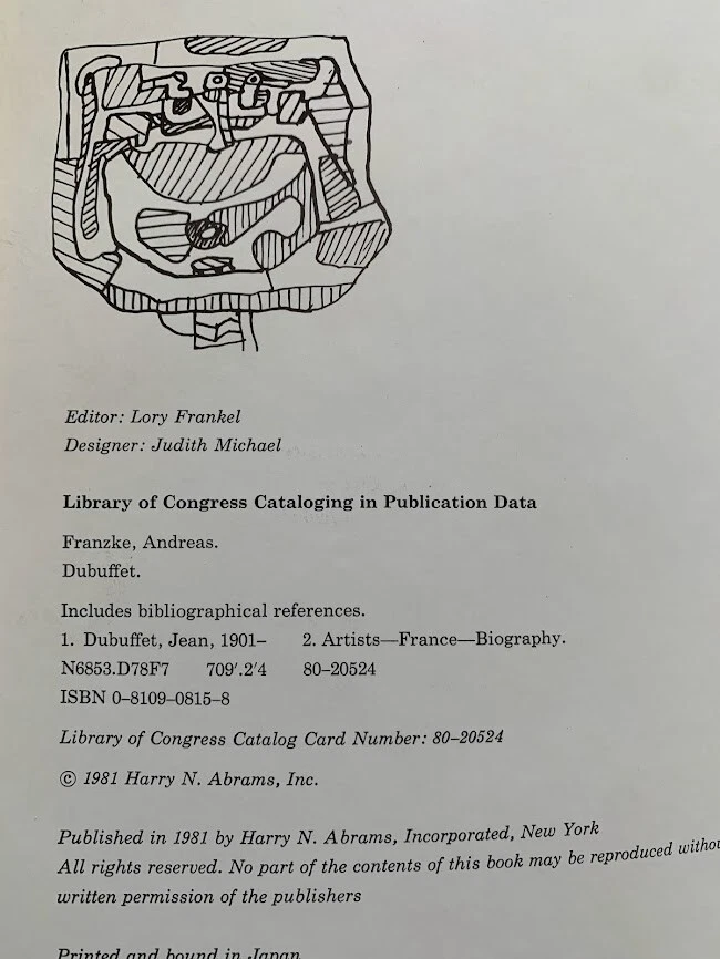 1981 Jean DUBUFFET Book by Andreas Franzke, Publisher Harry N Abrams France