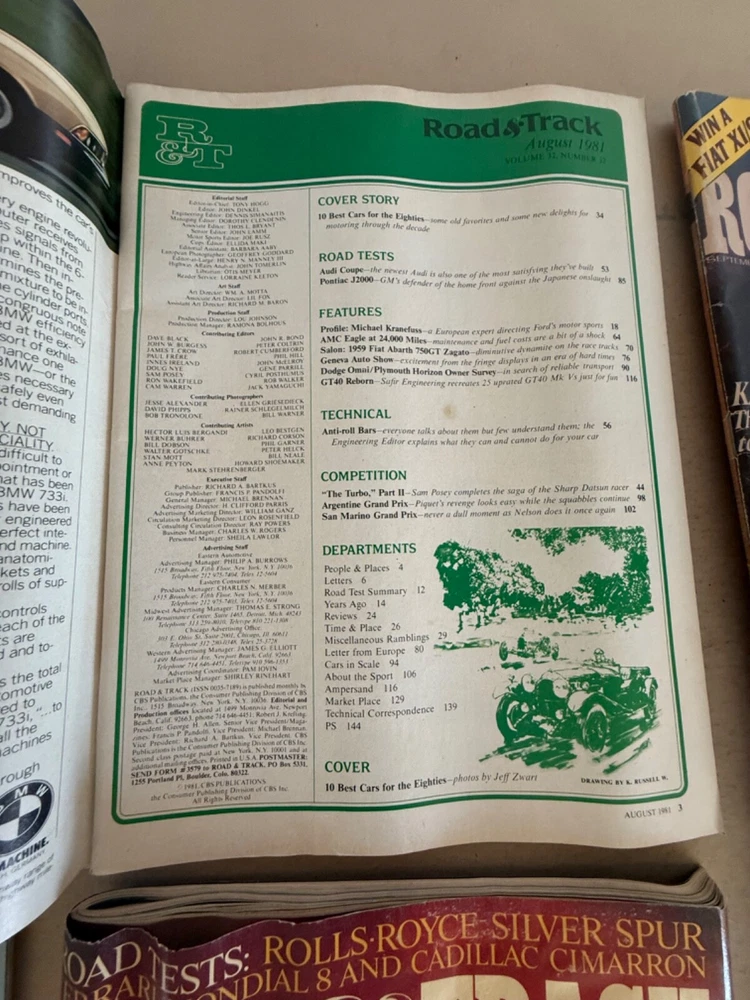 1981 Road & Track Magazine Full Year Lot 12 Issues Complete Set They look their age, but are complete magazines, no missing pages. Covers may be slightly soiled or creased, and some fraying of the spine edge may be present. Possible small cover edge tears or light stains. They have been read a few times, but handled with care. They are highly collectible and desirable items from acceptable to very good. Please check the photos for more information including the contents before purchase , feel free to ask any questions or ask for more photos. Follow us and check other listings of Road & Track Magazines. 12 Issues of magazines is about 11-12 lbs including packing box , Ship by USPS Ground Advantage with insurance 。 The cost will be calculated varies based on location 。 Thank you!