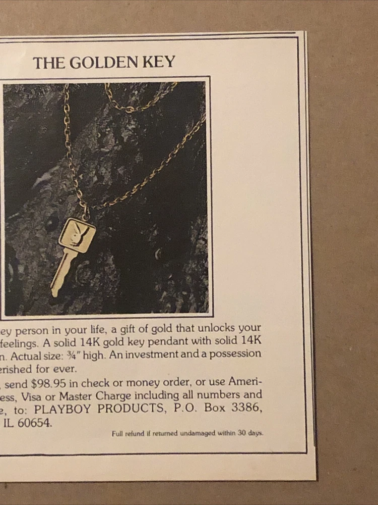 1981 The Golden Key Playboy Bunny Pendant PRINT AD Gold Necklace Jewelry VTG 80s