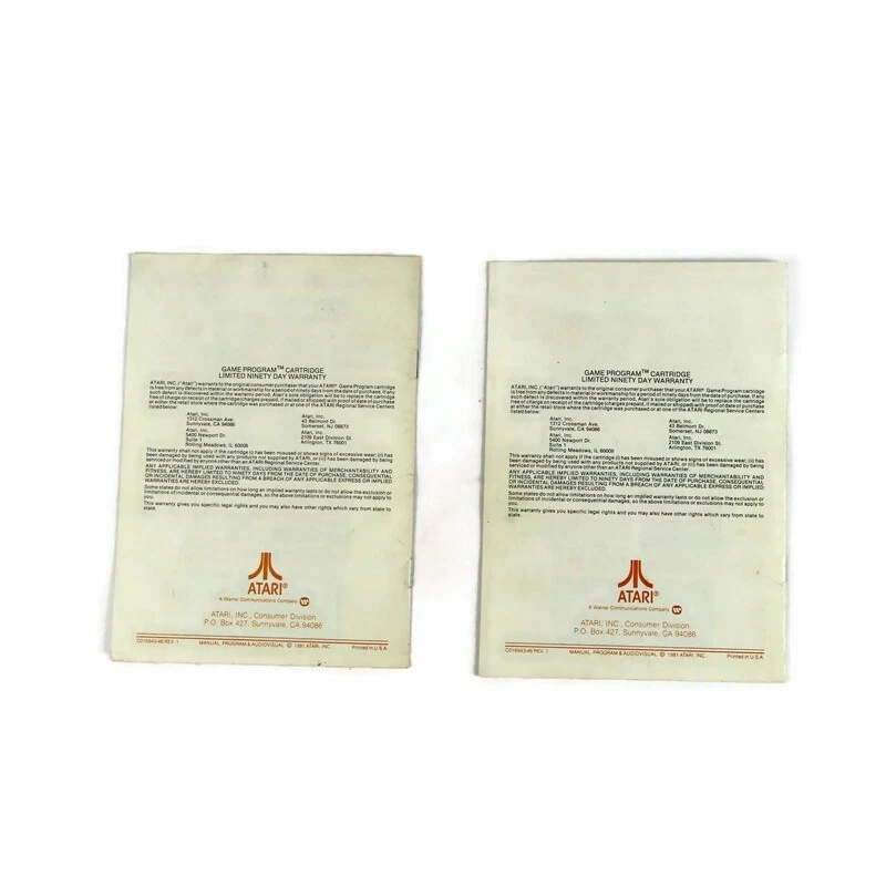 Custom Bundle: Yes Platform: Atari MPN: cx2646 Features: Manual Only Game Name: Pac-Man Publisher: Atari Release Year: 1981 Bundle Description: LOT OF 2 Instruction Manuals