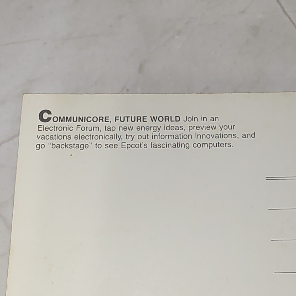 Capture a piece of Disney history with the Communicore EPCOT Center postcard, a vintage collectible dating back to 1982. This piece celebrates the iconic Walt Disney World attraction, showcasing the unique blend of futuristic design and classic Disney charm that has made Epcot a beloved destination.