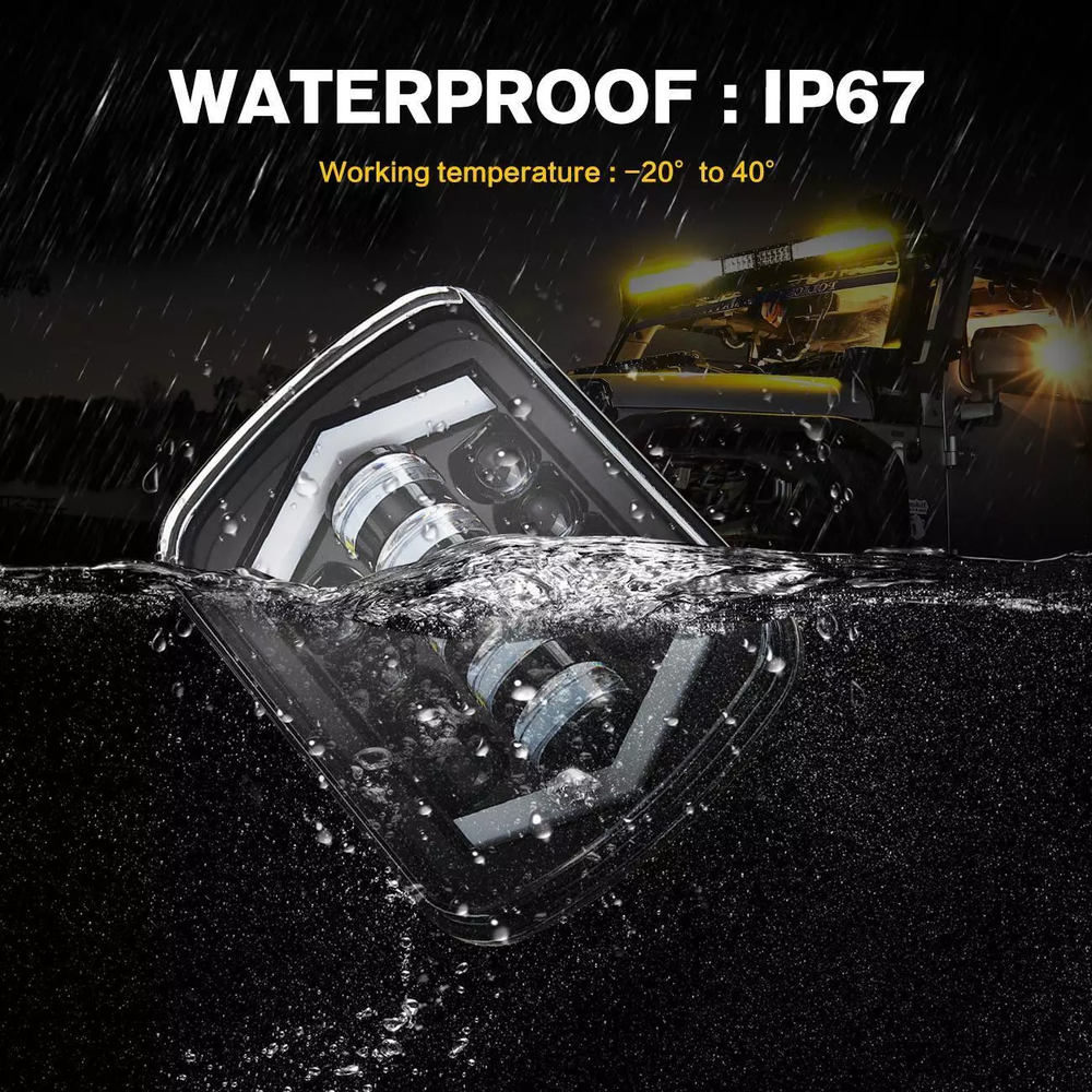 Notes: 1. **Note:This item is sold individually (each) for vehicles that only require 1 piece (motorcycles,snowmobiles,ATVs,etc).should you need a pair, be sure to change the QTY at checkout to 2. 2. Important: This is a universal item, not adapted to a specific model. In many cases, individual adjustments are required for assembly. Please use the dimensions and pictures to check whether it is possible to fit the vehicle in question. Installation requires knowledge of vehicle electronics, if in doubt have it installed by a specialist workshop. 3. If your shipping address is not to US, we will ship from CN stock, items will be shipped from our warehouse in South China. 4. Installation instruction is NOT included,professional installation highly recommended. Specification: LED Chip: led chips Color Temperature: 6000K pure white light Lumen: 8000lms on high beam, 4800lms on low beam Power: 100W Waterproof Grade: IP68 Voltage: 9-32V DC Housing: Aluminum Alloy Life Span: 80,000 hours Compatibility: Truck, Offroad, 4WD, Tractor, ATV, Boat, UTE Measurement: 7.87"(Length)x5.63"(Width)x3.14"(Depth),will fit headlight with similar size Package Included: 1pcs 7x6 LED Headlight **Note:This item is sold individually (each) for vehicles that only require 1 piece (motorcycles,snowmobiles,ATVs,etc).should you need a pair, be sure to change the QTY at checkout to 2. Fitment: Compatitable with headlights: H6014 H6054 H5054 H6054LL 69822 6052 6053;Fit any car or truck that has 5x7/7x6 inch square headlights. for Jeep Models with 5 inch x7 inch (7 inch x6 inch ) stock headlights. for 1987- 1995 Jeep Wrangler YJ for 1984 - 2001 Jeep Cherokee XJ for 1986 - 1992 Jeep Wrangler MJ Comanche for GMC Models with 5 inch x7 inch (7 inch x6 inch ) stock headlights for GMC Savana 3500 ( 1998-2002, 2004, 2007, 2009-2012) for GMC Savana 2500 ( 1998-2001, 2004, 2006, 2008, 2010-2012 ) for GMC Savana 1500 ( 1998-2001, 2003, 2005, 2007, 2009-2012 ) for GMC Safari ( 1998-2002, 2004, 2005 ) for GMC K3500 ( 1997-2000 ) for GMC K2500 Suburban ( 1997-1999 ) for GMC K2500 ( 1997-2000 ) for GMC K1500 Suburban ( 1997-1999 ) for GMC K1500 ( 1997-1999 ) for GMC C2500 Suburban ( 1997-1999 ) for GMC C2500 ( 1997-2000 ) for GMC C1500 Suburban ( 1997-1999 ) for GMC C1500 ( 1997-1999 ) for Ford Models with 5 inch x7 inch (7 inch x6 inch ) stock headlight for Ford F-550 Super Duty, Ford F-450 Super Duty, Ford F-350 Super Duty, Ford F-250 Super Duty, Ford F-250, Ford F-150, Ford E-450 Super Duty, Ford E-350 Super Duty, Ford E-350 Econoline Club Wagon, Ford E-350 Econoline, Ford E-350 Club Wagon, Ford E-250, Ford E-150 Econoline Club Wagon, Ford E-150 Econoline, Ford E-150 for Chevrolet Models with 5 inch x7 inch (7 inch x6 inch ) stock headlights for Chevrolet Express 3500, Chevrolet Express 2500,Chevrolet Express 1500, Chevrolet Astro for 82-94 Chevy S10 Pickup NOTE: Some vehicles headlight socket are not standard that may need to swap the pins, the headlights will not light up by Plug and Play, so please use H4 to 3 pins to simply swap the pins to make the lights work normally, H4 to 3 pins adapters are not included.