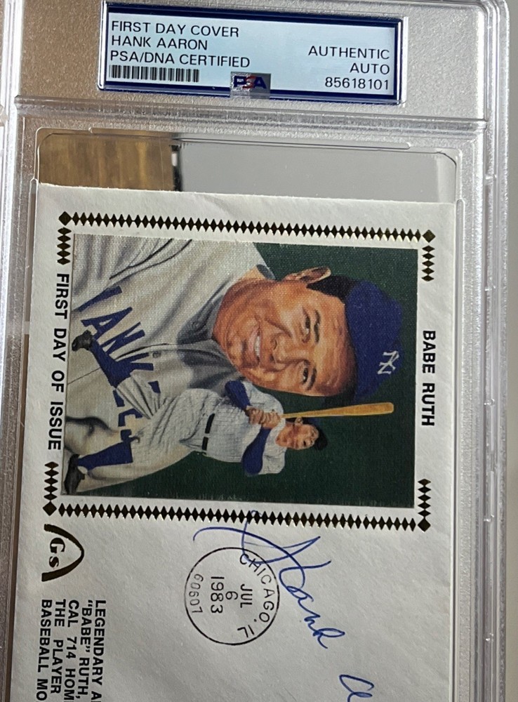 1983 GATEWAY HANK AARON AUTO BABE RUTH FDC PSA/DNA SLABBED HOF FIRST DAY ISSUE