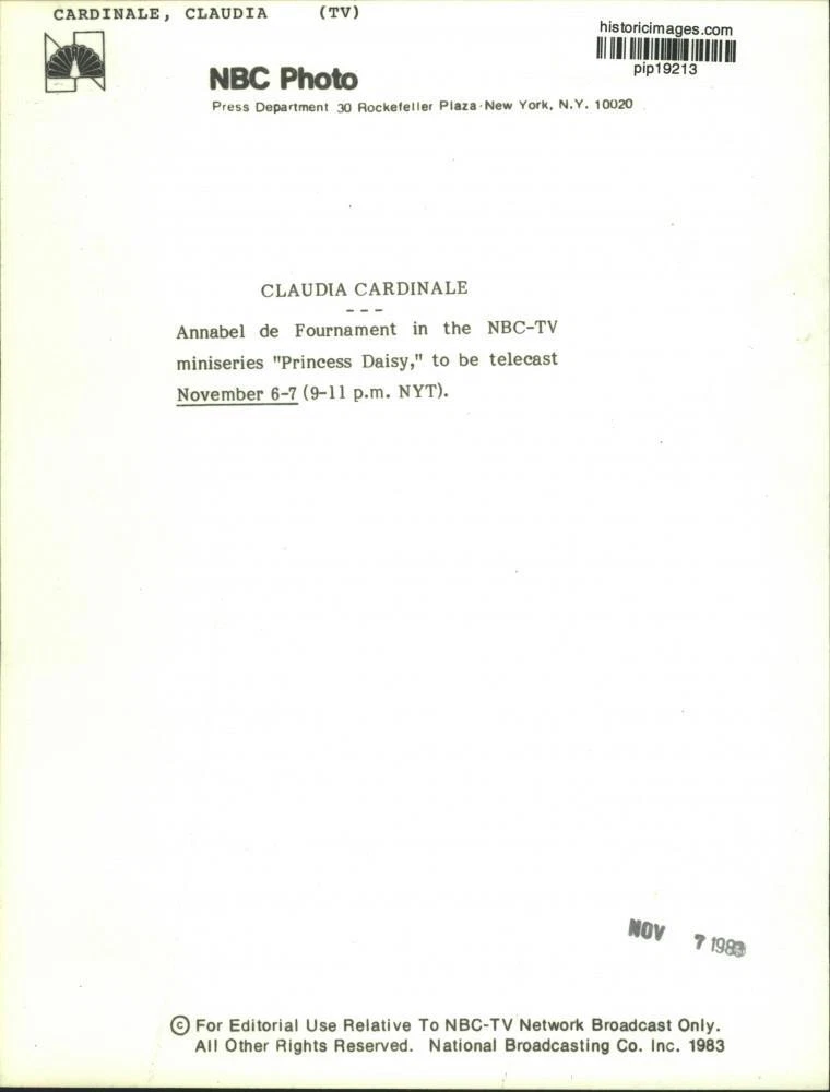 ebay template Note: Please study the images carefully to determine the condition of this vintage photograph, as it may not be in perfect condition. It may contain wrinkles, cracks, and possibly even tears due to its age and how it was handled before it got to us. A scanner may interpret colors and contrast differently than human eyes will, so it is possible that the actual photograph may be slightly darker or lighter in person. This vintage photograph is offered for sale as a collectible item and conveys no transfer of copyright. 1983 Press Photo Claudia Cardinale stars in "Princess Daisy," on NBC. This is an original press photo. TV - Claudia Cardinale as Annabel de Fournament in the NBC Television miniseries "Princess Daisy."Photo measures 7 x 9inches. Photo is dated 11-7-1983. PHOTO FRONT PHOTO BACK Historic Images Part Number: pip19213 FAQs Q: Can I just download a digital version instead? A: No, we sell only vintage originals and do not make or distribute any copies, including digital ones. Q: Do you combine shipping and invoices? A: Multiple photos won on the same seller ID combine automatically through the eBay checkout process. If you encounter problems with this, send us a message via eBay messaging and we will send you an invoice. Due to eBay limitations, we cannot combine items won on our different seller IDs for a single shipping charge. Q: How quickly do you ship the items once paid? A: We ship within one business day after your payment clears. If you do not receive an "order shipped" email from us by the close of the second business day from submitting payment, please e-mail us via eBay messaging. Q: How do you make sure my photograph arrives safely? A: We package each order between two cross-corrugated pieces of cardboard to ensure that the package is as difficult to bend as possible. We then wrap each order in a plastic sheet to help protect against moisture. We want you to rest assured that we take every precaution to ensure that the photograph you receive will be in the same condition in your care as it was in ours. Q: Will the "Historic Images" watermark be on my photo when I receive it? A: No. This is a digital watermark we use to protect our images. It is not printed on the photo. Q: What are your office hours? A: eBay for us is a business, and a very fun one to be in! We are open M-F 9 to 5 (CST). Therefore, we do not return e-mails and phone calls over the weekend. We observe the following holidays: New Years Day, Memorial Day, Fourth of July, Labor Day, Thanksgiving and the day after Thanksgiving, Christmas Eve and Christmas Day. Q: Where did all these vintage photos come from? A: These original vintage photographs are from various news service and newspaper photo archives from locations around the country including: Boston, Detroit, Tampa, Chicago, Denver, Seattle, New Orleans, Milwaukee, Portland, Spokane, and more. We do not copy or reproduce any photographs -- every item is a unique vintage piece that was housed in a news archive. Q: Can I use this photograph in my book/blog/website? A: The short answer is no. There is no transfer of copyright for republication or reproduction with these photographs when you purchase them, and only photographs taken before 1923 are currently automatically in the public domain. Permission from the copyright holder, which usually can be identified from the back of each photo, must be sought to republish or reproduce the image for any purpose. Q: Do you relist items (in case I miss an auction ending)? A: Auction items that receive no bids are relisted in our store (historicimages-store on eBay) as a fixed-price item and at a higher price than the starting auction price. Q: Do you leave feedback? A: Yes, we always leave feedback for buyers. Our software monitors when our buyers leave us feedback, then notifies us that we can leave feedback for the buyer. Rest assured, if you leave feedback, we will do the same! Check out our family of eBay IDs: historicimages01 Sports Photos historicimages02 Entertainment Photos historicimages03 Americana Photos historicimages04 International & War Photos historicimages05 Transportation Photos historicimages06 Photos of All Subjects historicimages07 Entertainment Photos historicimages08 Newsworthy Photos historicimages09 Entertainment Photos historicimages10 Sports Photos historicimages-store Our largest fixed-price selection historicimages-gallery Hand-picked photos Saturday night auctions About Us Historic Images was formed in September 2009, with a handful of scanners working out of a basement to digitize newspaper photo archives. We have since moved out of the basement, and we can now archive thousands of photos per day. Our company has worked with magazines and newspapers from Detroit, Boston, Denver, Seattle, Tampa, Chicago, and New Orleans, just to name a few. We are constantly adding to our inventory, and have assembled an archive of millions of photos to date. As our company evolved, we began our eBay business, which brings thousands of fresh auctions per week to the world's largest online auction marketplace. Our custom software systems and team of great employees allow us to efficiently scan and sell large photo archives online. At the very core of our company's DNA is a strong commitment to customer satisfaction and strict integrity for our product. Our promise to you is that we will do everything in our power to provide you a great buying experience. Copyright 2009 - Present, Historic Images, Inc. Sell Smarter with Kyozou. Inventory and Ecommerce Management