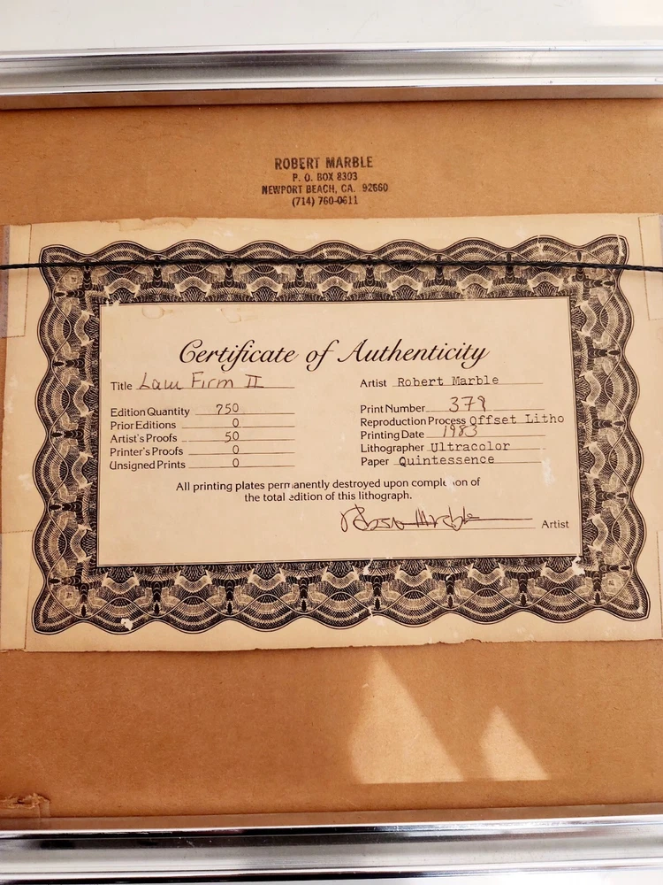 1983 Robert Marble "Law Firm II" Signed Framed Lithograph w/ COA