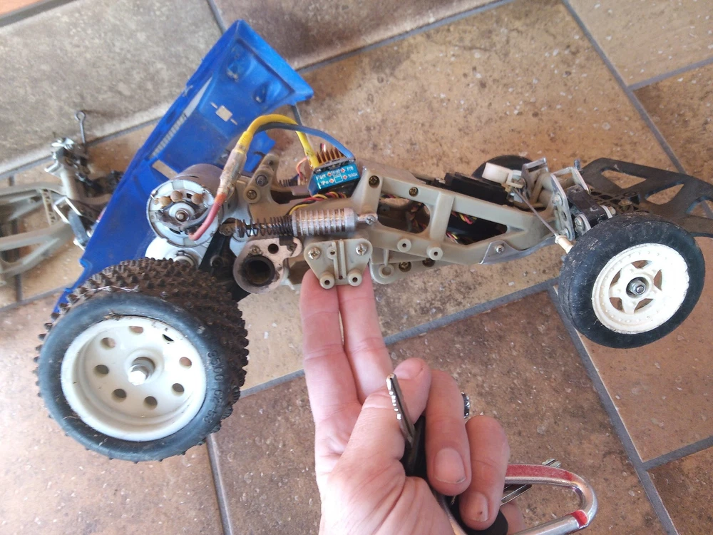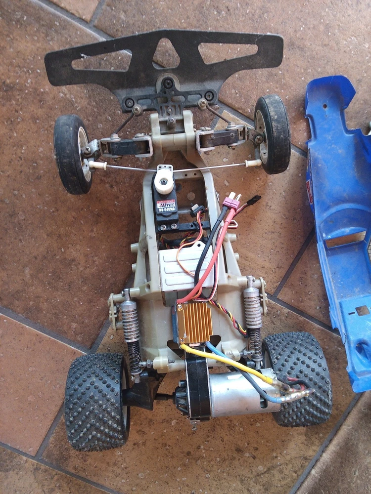 1983 Tamiya Frog sold as a Parts Lot due to age. ESC works Fire Phoneix 320A, Hex drive and Differential is working. Electric Speed Controll came on the car, motor works,with Hi-Tech servo. Stock Oil Shocks, Hitec Servo. Sold as Parts, no haggle. r*t*r with your radio system! ;9). Extra chassis came with it and is included (available). Basically just need your 7.2V battery and radio system, on this classic Tamiya.