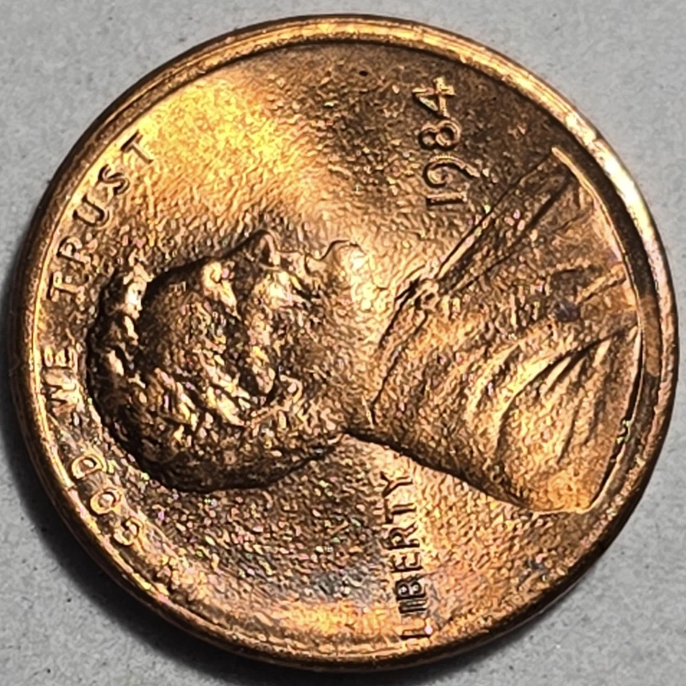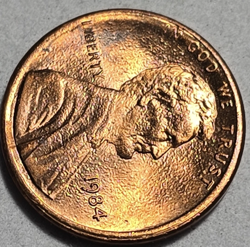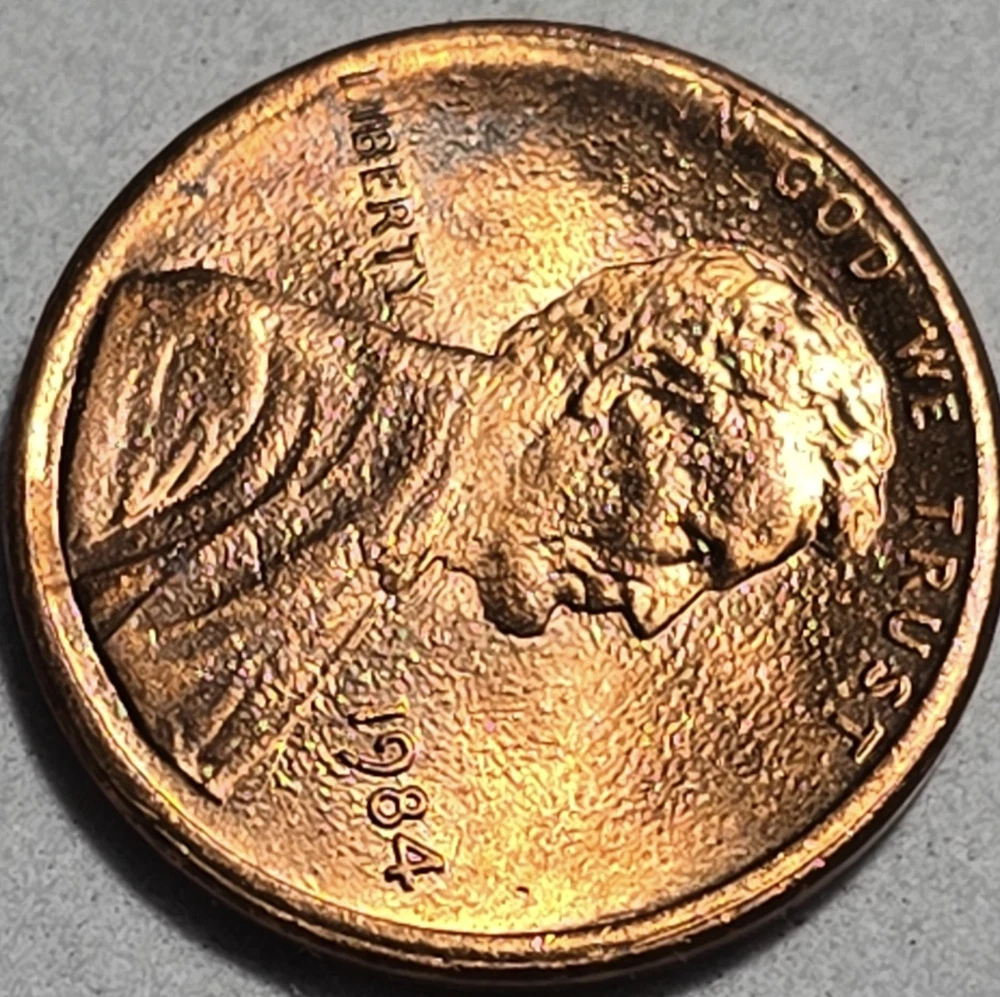This is a beautiful 1984 Lincoln Penny One Cent, No Mint Mark, minted in Philadelphia, United States. 💥This is beautiful mint state Red color coin is made of copper tainted zinc weighing 2.5g. 💥This well-preserved coin also features Plating / die blisters error on the Obverse. This Plating/ blisters are trapped gas bubbles on this coin. 💥Also, features die Errors on the Obverse as observed on the weak strike on letters of "I" in "IN" and "GOD" Where "I" is missing. 💥This coin also features Plating / die blisters errors on the Reverse. 💥This beautiful coin is another valuable addition to any collection 💥💥💥