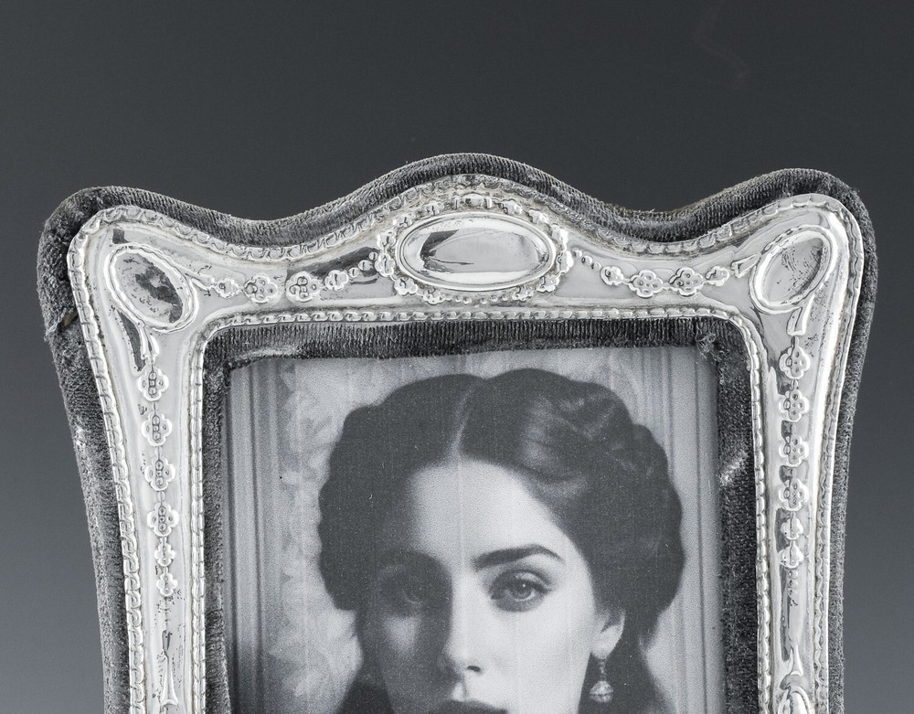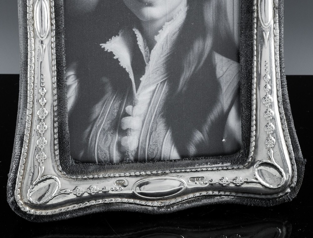 Note To all Buyers. Shipping is usually done within 1 Full Business Day Of Payment. All shipping is provided a tracking number, and regardless of location arrives usually between 2-7 Business days, please ignore the estimated time Ebay displays for you. DESCRIPTION : Part of a lovely collection of desk top or table photo frames we have listed. This beauty features lovely Art Nouveau repousse design, very much in the style you would find 100 + years ago but is actually from 1985 and is made in England by the Keyford Frame company. The Frame is also Hallmarked Sterling Silver as seen. The photo shown is just a print off from the internet to show how a photo of your own would look. Be sure the check the others from the collection as each additional frame will ship for very little extra. CONDITION : In good condition with no cracks or repairs. Showing wear to the material as seen, lending to the antique look. MEASUREMENTS : The frame measures approx. 7 inches tall by 5 inches wide. Holds a photo measuring 5 inches tall by 3 inches wide. Has a total weight of 182 grams. SHIPPING : We offer combined shipping on orders, therefor the more you order the cheaper the shipping!! We also offer Worldwide Shipping on the vast majority of our stock, please contact us to arrange your worldwide and specific shipping needs!