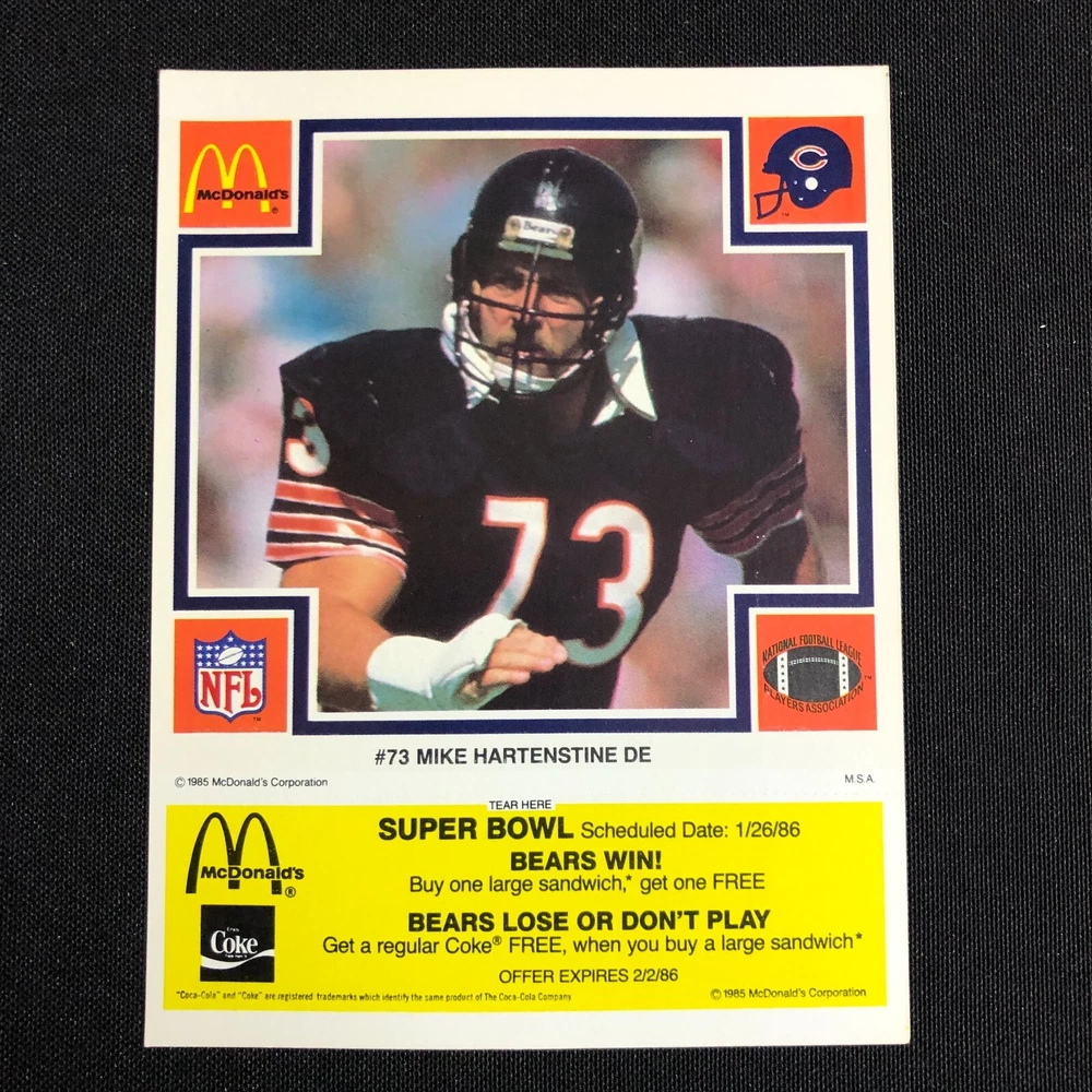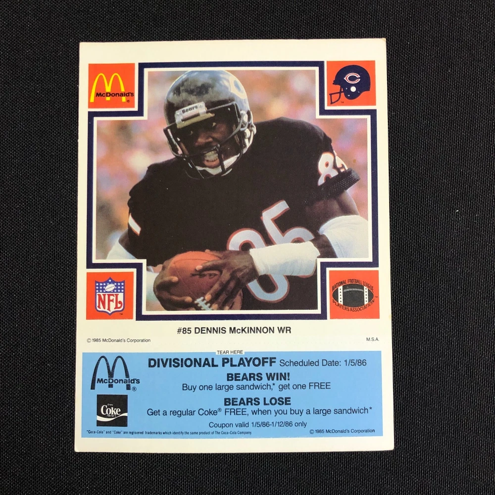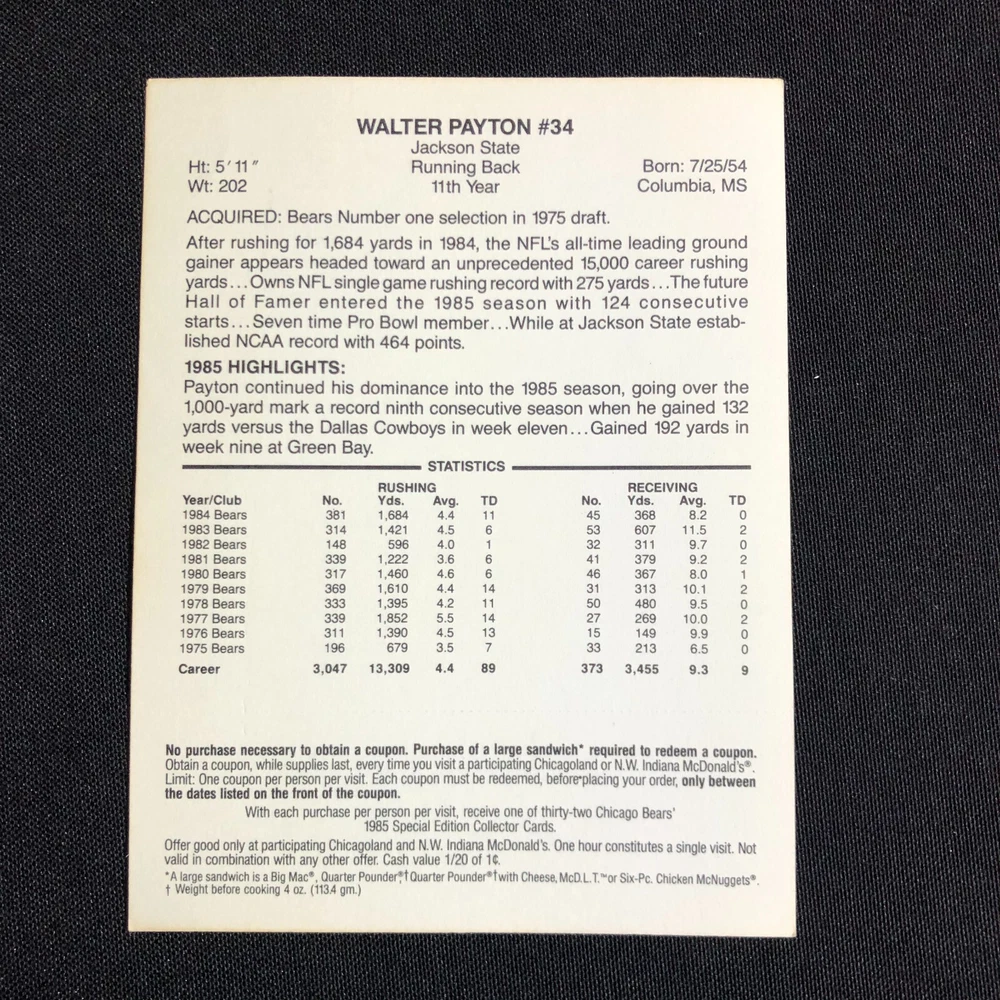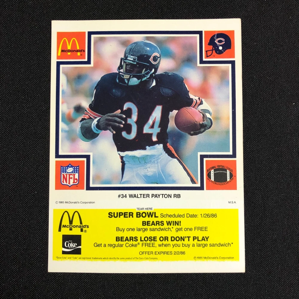 Lot of 5 includes: Walter Payton: Running Back Dennis McKinnon: Wide Receiver Jim Covert: Off. Tackle Mike Hartenstine: Def. End Jay Hilgenberg: Center Cards are in good vintage condition. Please see photos as they are intended as part of the description. Please feel free to message me with any questions. Shipping insurance is included in the shipping quote. Your item will be packed with care. Thank you for stopping by the shop and have a great day!