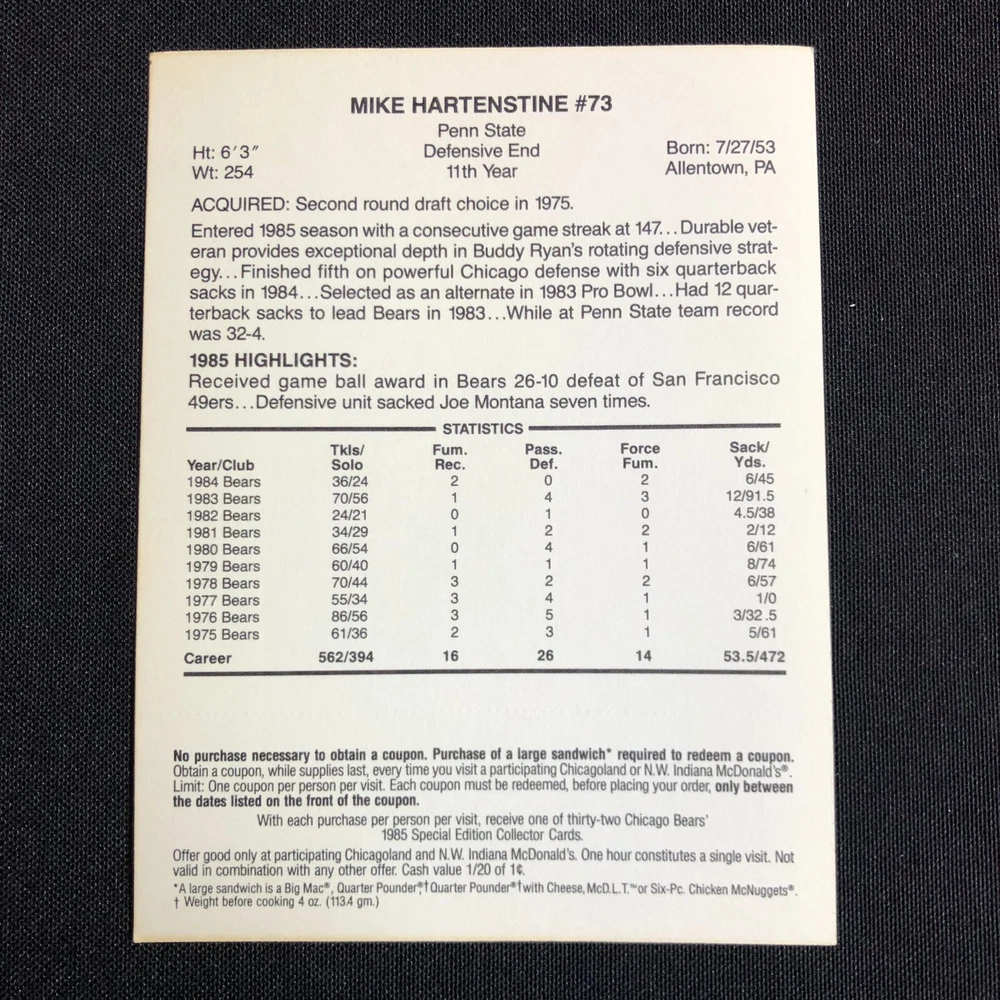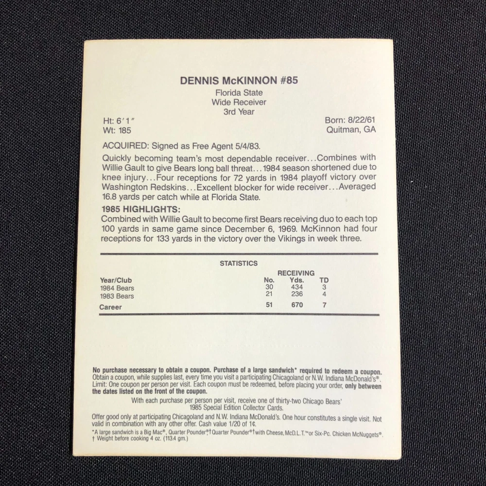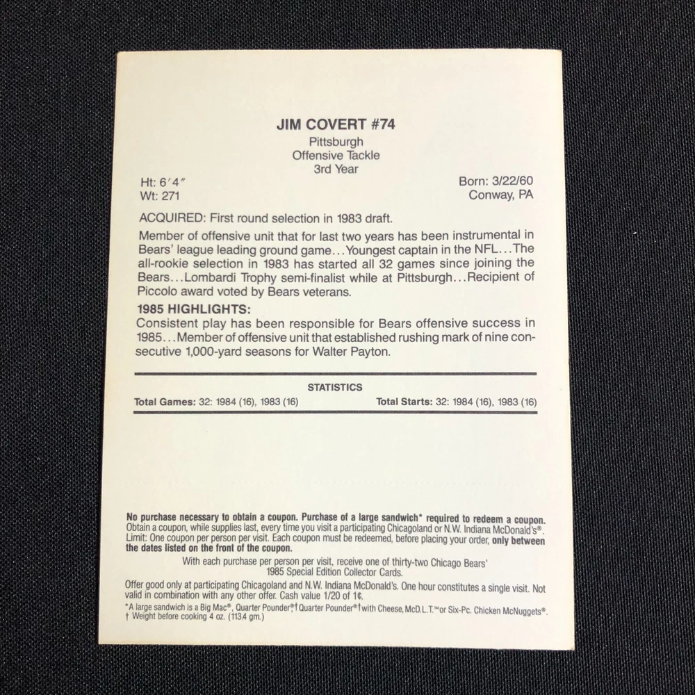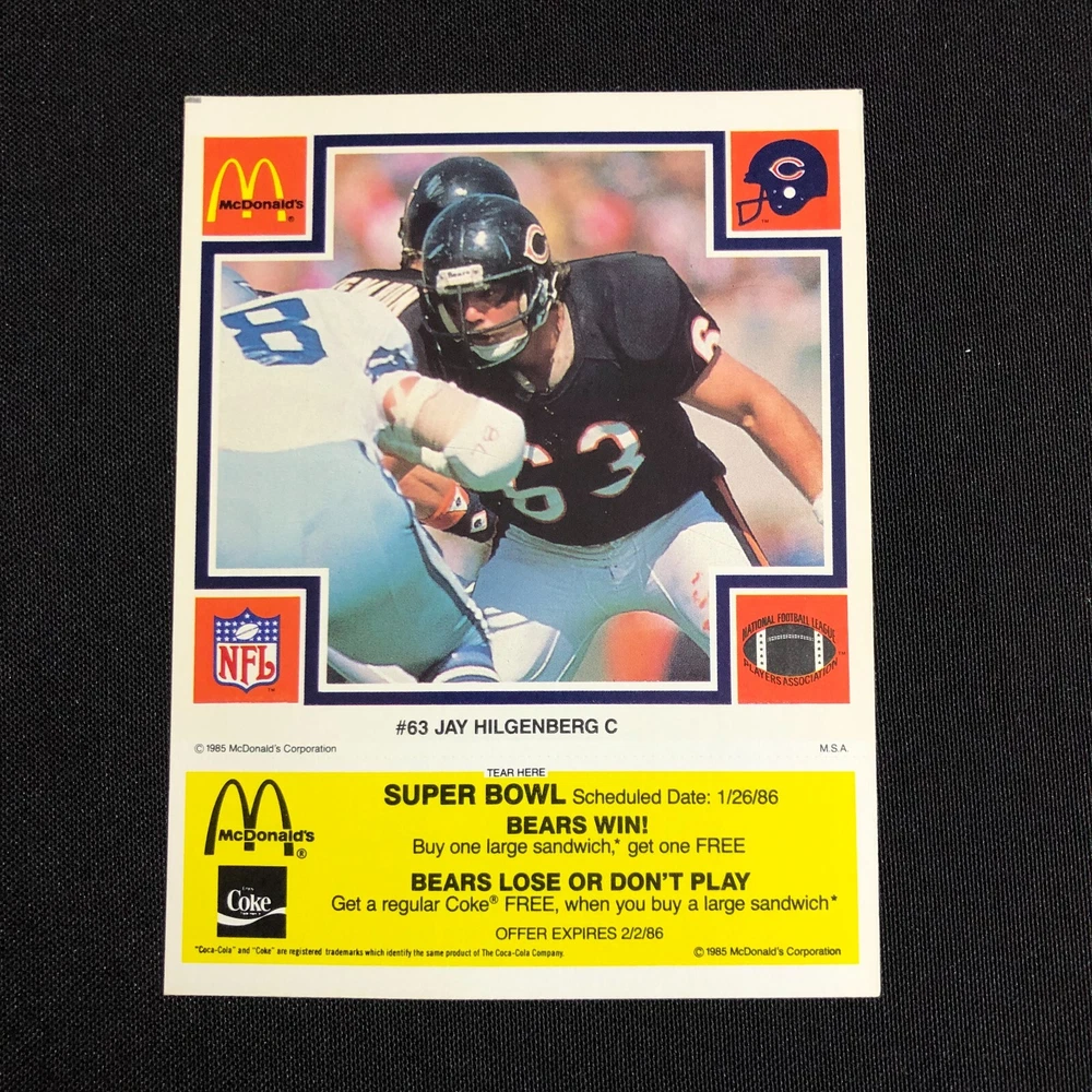 Lot of 5 includes: Walter Payton: Running Back Dennis McKinnon: Wide Receiver Jim Covert: Off. Tackle Mike Hartenstine: Def. End Jay Hilgenberg: Center Cards are in good vintage condition. Please see photos as they are intended as part of the description. Please feel free to message me with any questions. Shipping insurance is included in the shipping quote. Your item will be packed with care. Thank you for stopping by the shop and have a great day!