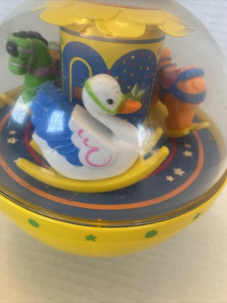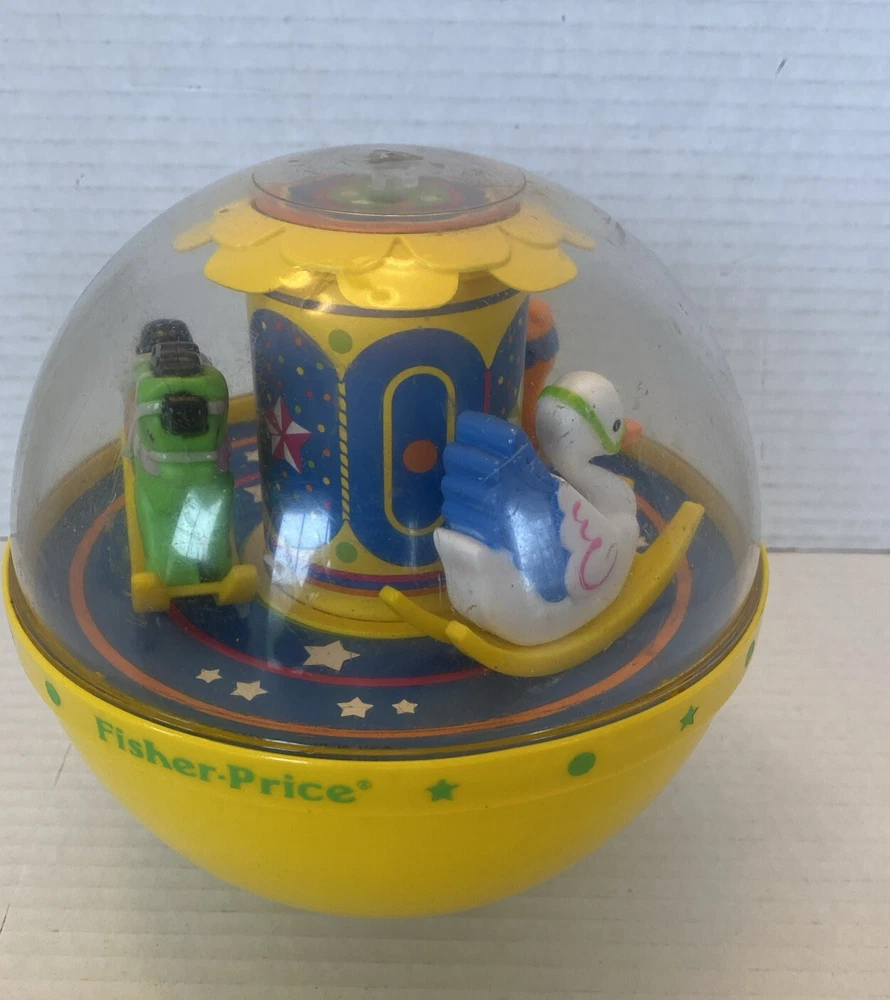 1985 FISHER PRICE VINTAGE CHIME BALL ROLY POLY YELLOW 1150 MUSICAL BABY CAROUSEL