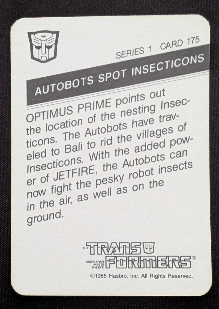 Franchise: Transformers Type: Non-Sport Trading Card Year Manufactured: 1985 Set: Series 1 Manufacturer: Hasbro