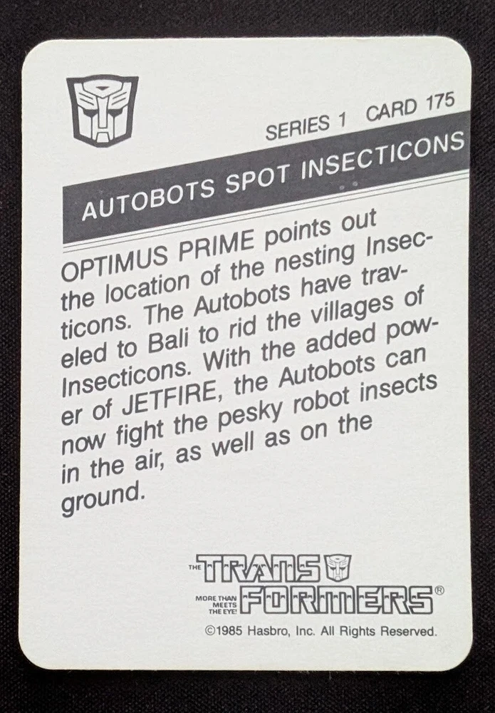 Manufacturer: Hasbro Set: Series 1 Franchise: Transformers Year Manufactured: 1985 Type: Non-Sport Trading Card