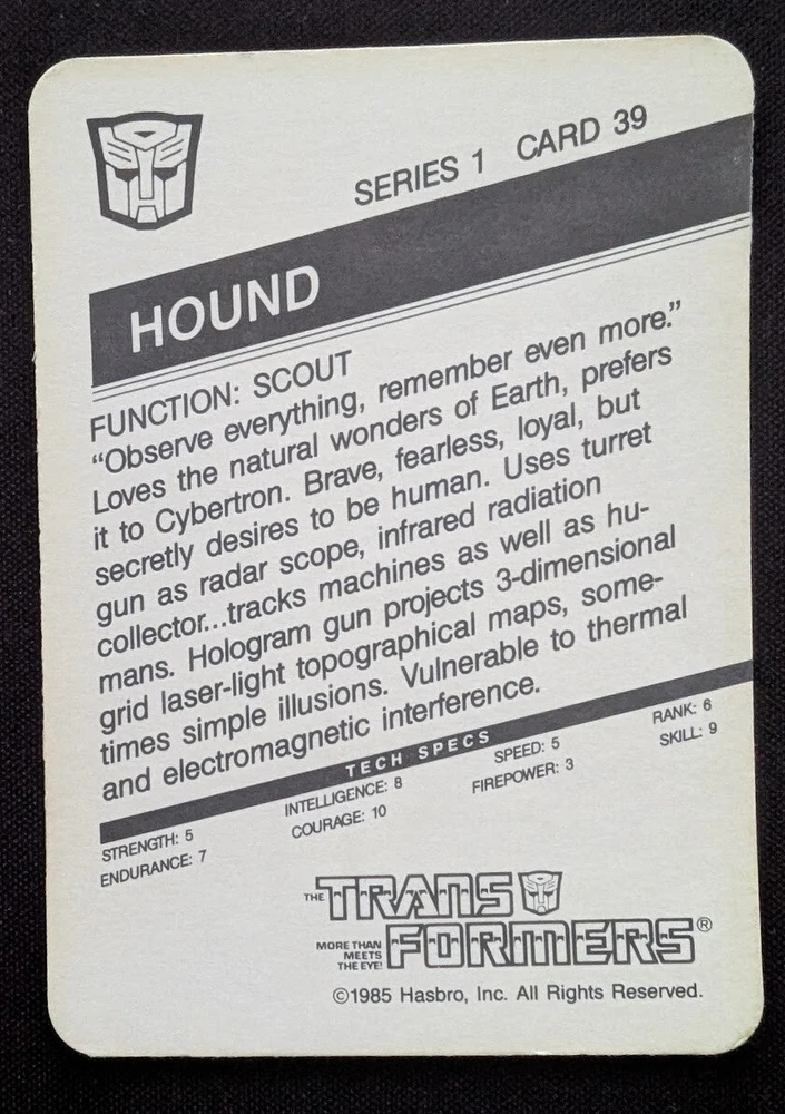 1985 HASBRO TRANSFORMERS SERIES 1 #39 HOUND *ROOKIE* NM/MINT+ *$1 AUCTION*