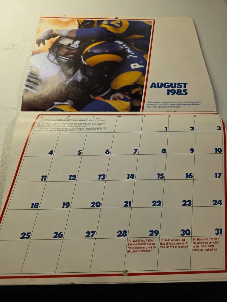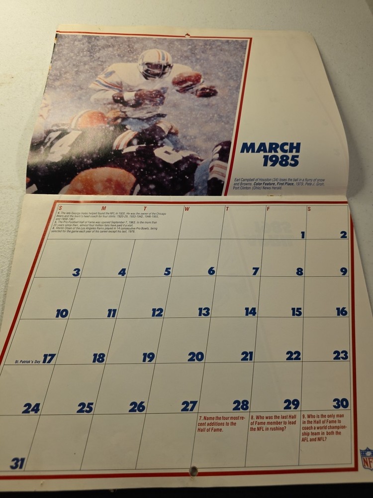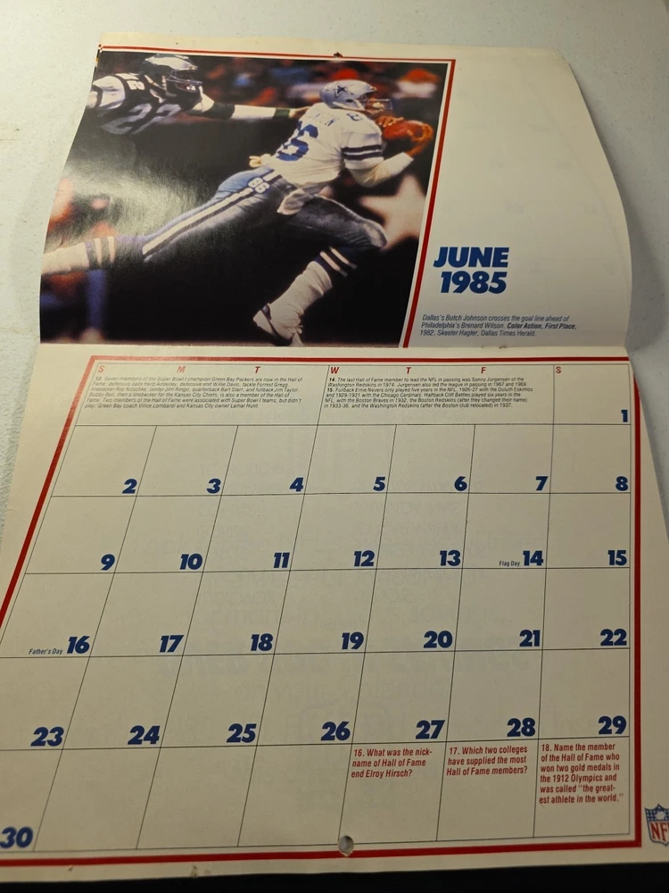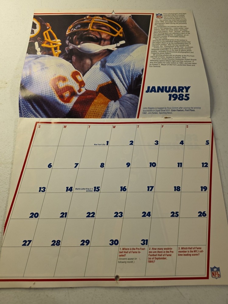 1985 NFL Coupon Football Calendar Vtg Walter Payton John Riggins Terry Bradshaw