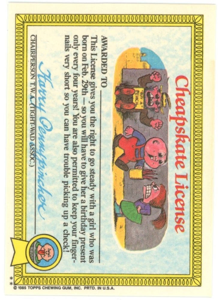 Card: Cindy Lopper Card #: 37b Type: Base Set Release Year: 1985 Series Release: Garbage Pail Kids Original Series 1 Special Notes: Photo is showing scans of the exact card you will receive! Condition: Minty, will come in a pennysleeve and toploader. No writing on the card. Matte back version.