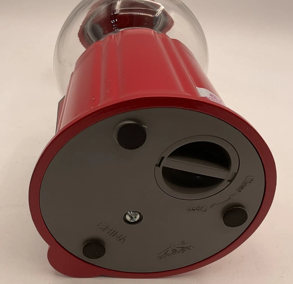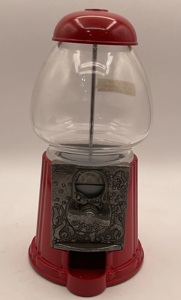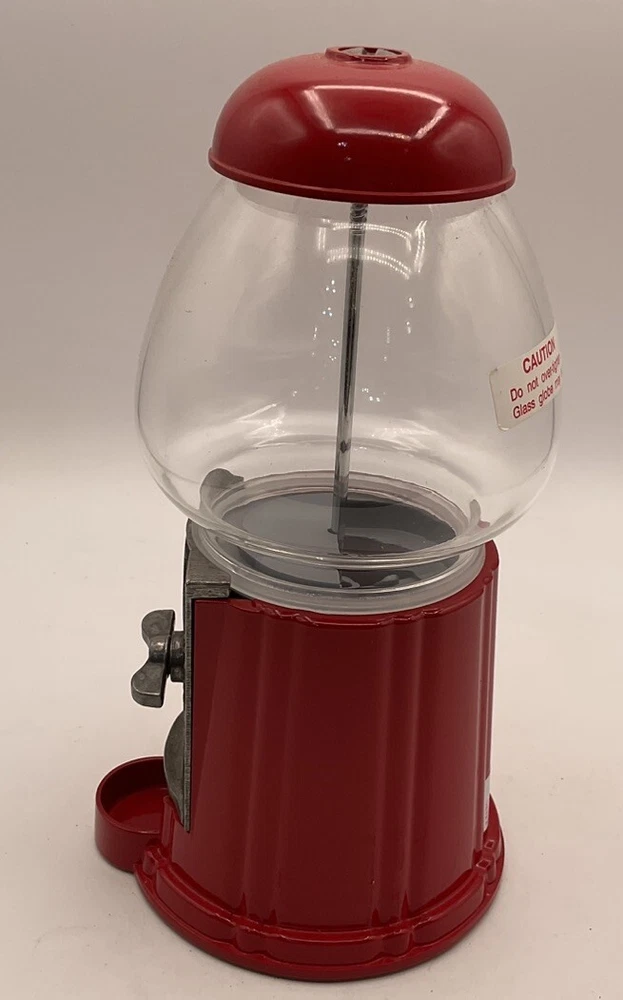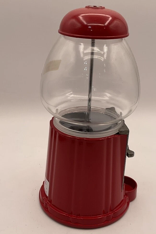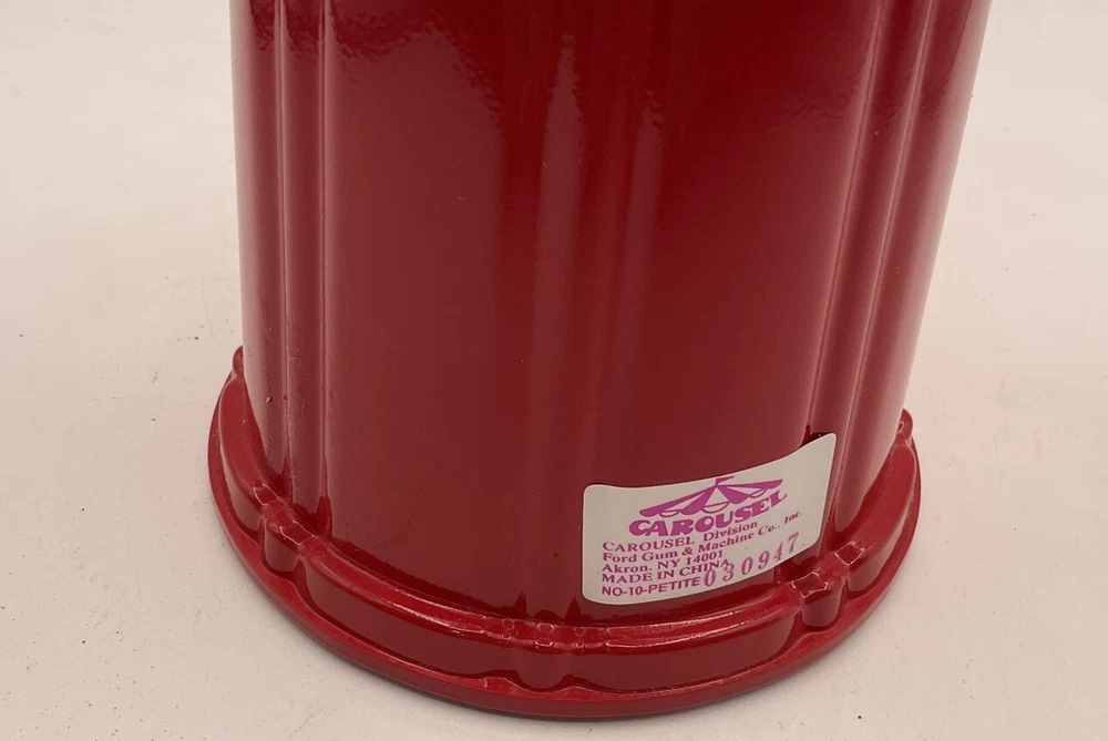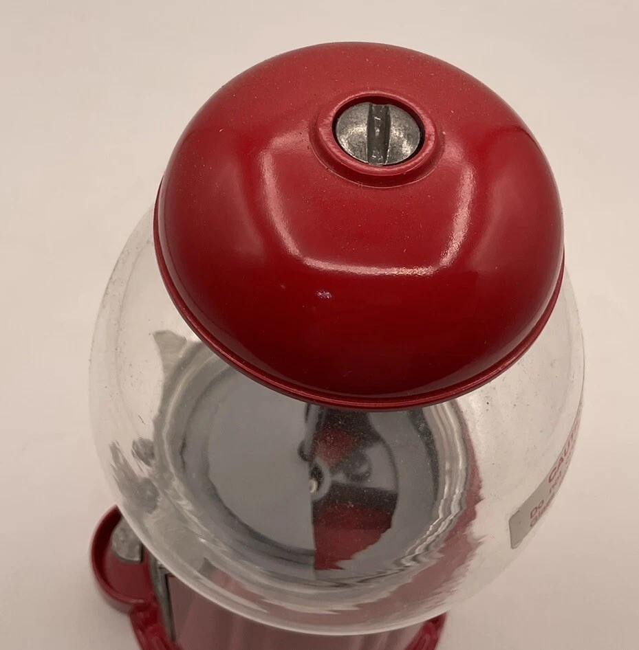 1985 Vintage Red Petite CAROUSEL Gumball Machine Metal w Glass Globe works 9"