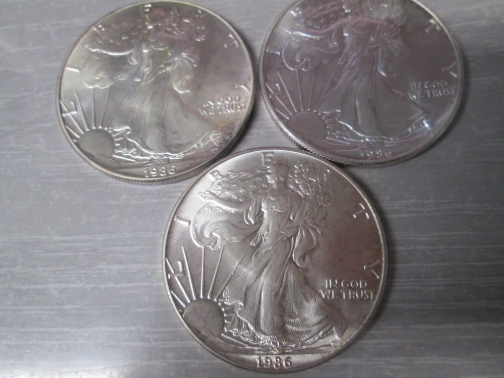 1986 American Eagle Uncirculated .999 Fine Silver 1 Ounce Dollar Coins- Lot of 3 Please look at all photo's for actual picture UNITED STATES SHIPPING We offer combined shipping on multiple orders. In this event, please wait to receive a combined invoice before completing payment. You may notify us via eBay message of your continued bidding to help us best assist you. We give up to 10 Days from first items ending date for combined orders, or an unpaid case will open. Once a payment is made no other orders can be combined with that order. We use the USPS shipping service through EBay so you can track your package right online. You will receive your tracking number via messages. We do offer LOCAL PICK UP INTERNATIONAL SHIPPING Please review the eBay Global Shipping Program before bidding. These orders will be subject to domestic shipping charges along with any taxes, tariffs or customs charges from the destination country. If you are not 100% satisfied with your item you may return within 30 days of received date. We do our best to present accurate information about every item we sell. If you have any questions please feel free to ask through message. WE APPRECIATE YOUR BUSINESS AND THANK YOU FOR VIEWING OUR LISTING!
