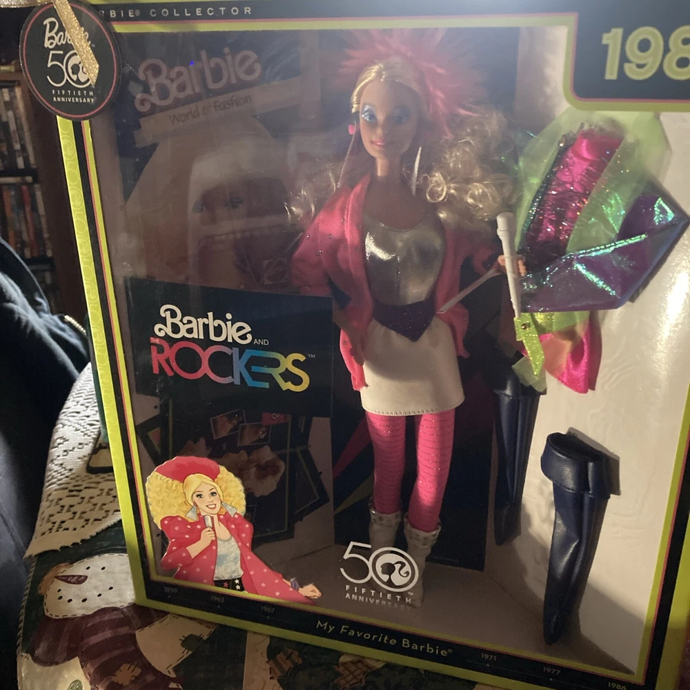 This rare edition 1986 Barbie and the Rockets Barbie Doll Set is a must-have for any collector or Barbie enthusiast. This set includes a beautiful Barbie doll with curly blonde hair, blue eyes, and a light complexion. The doll comes with a coat, accessories, an animal figure, a mic, and an extra outfit, making it perfect for all occasions. This Barbie Collector set is part of the Inspiring Women Series and features a Caucasian ethnicity. It is an original, licensed reproduction from Mattel and comes in its original packaging, unopened. The set is a collector toy and is perfect for anyone who loves retro-themed Barbie dolls. This set weighs 2lb and has a size of 11 inches, making it a great addition to any doll collection.