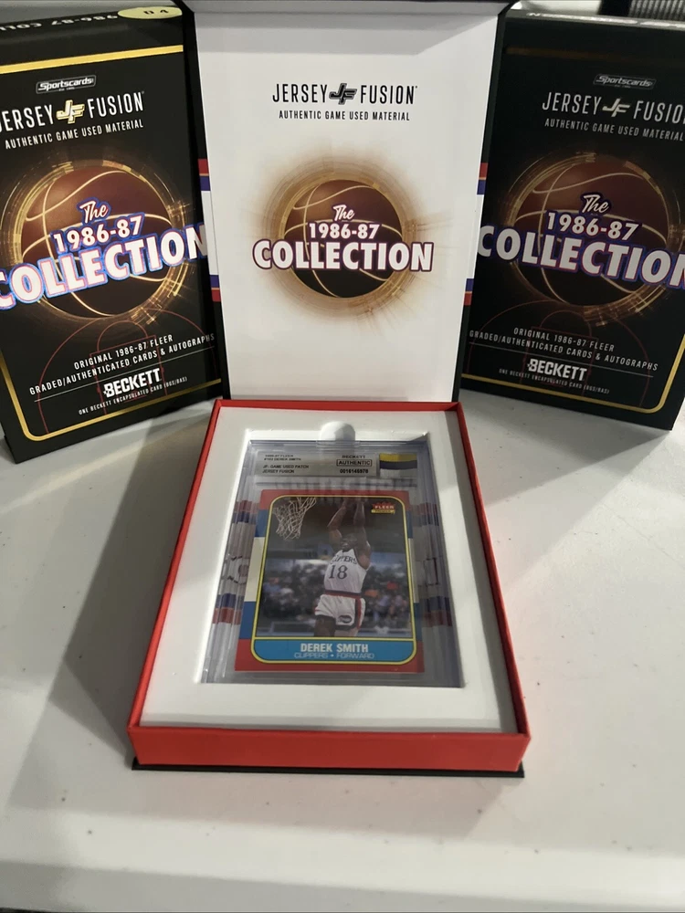 This 1986-87 Fleer basketball trading card features Derek Smith of the Los Angeles Clippers. The card is part of the Jersey Fusion set and includes a genuine patch of Smith's jersey. It is a standard-sized card and has not been autographed. The card is in English and was manufactured by Fleer in the United States. In addition to the base set, this card also falls under the Collectors Edition and Memorabilia categories. The card number is 103 and it is from the 1986-87 season. This patch variety card is a must-have for any basketball trading card collector.