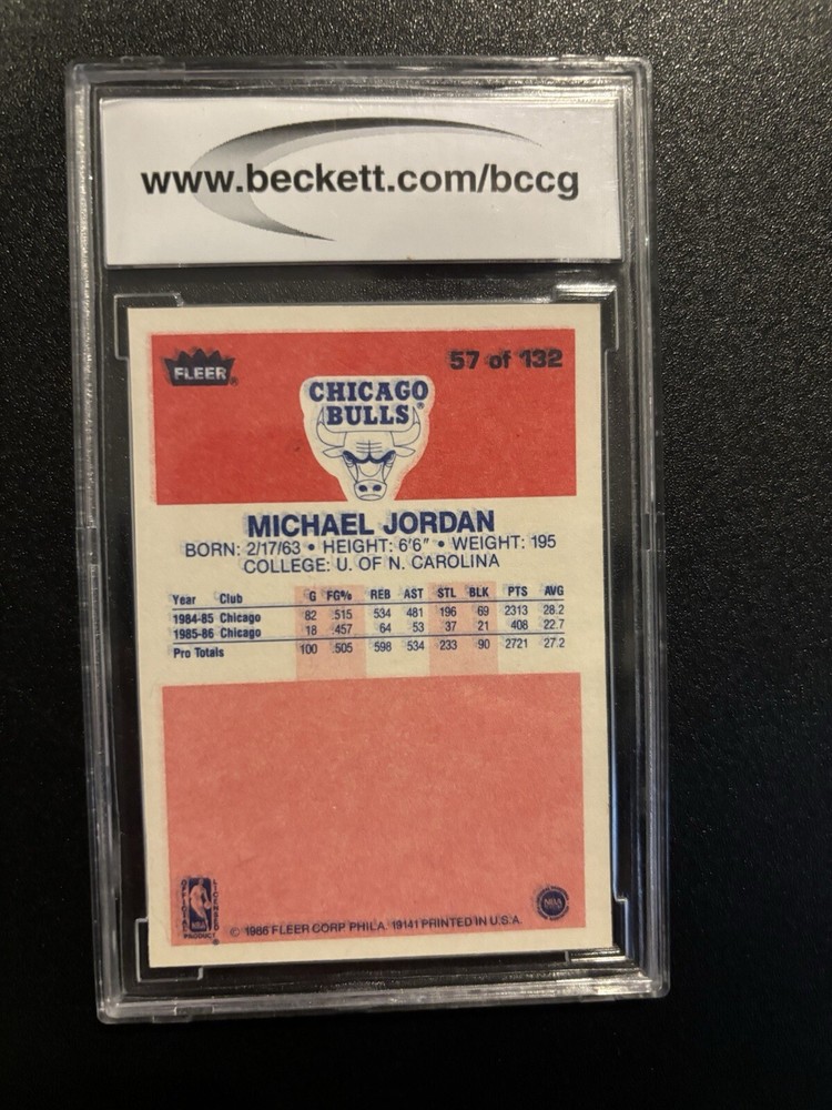 The 1986-87 Fleer Michael Jordan (RC) trading card is a Sports Trading Card graded by Beckett Collectors Club Grading (BCCG) with a grade of 9. This card features the rookie year card of legendary basketball player Michael Jordan, making it a highly sought-after and collectible item for sports memorabilia enthusiasts. The card does not have an autograph, but its condition has been professionally graded to ensure authenticity and value for collectors.