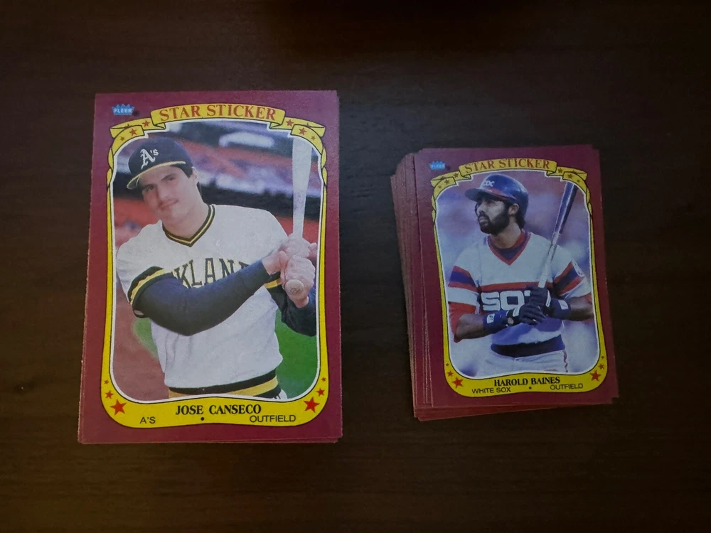 This is a complete set of 1-132 baseball trading cards from the 1986 Fleer Star Stickers collection. The set includes cards featuring players like Mattingly, Canseco, and Puckett, and is perfect for any Major League (MLB) fan.
