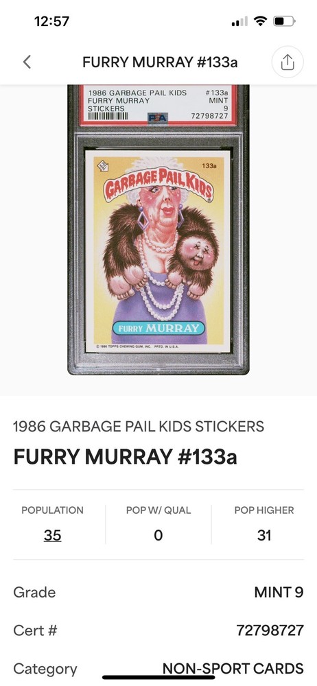 $ 20.54Garbage Pail Kids 1986 BLOATED BLAIR #136B PSA 9 Graded Card