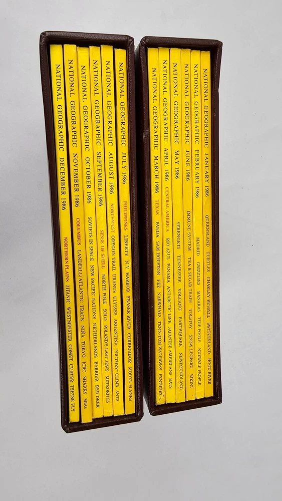 Available for sale in this lot is a National Geographic Magazine Complete Set & Slipcovers for 1986 (January-December). This includes all 12 magazines and all are in mostly good condition and include original maps. Please check the photos. Payment: PayPal or eBay Payments. Shipping: We ship using USPS Ground Advantage or UPS ground.